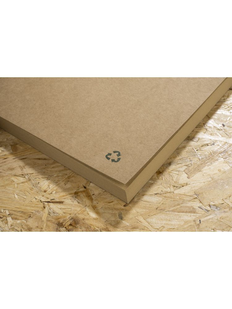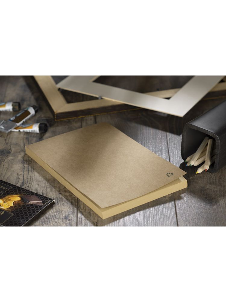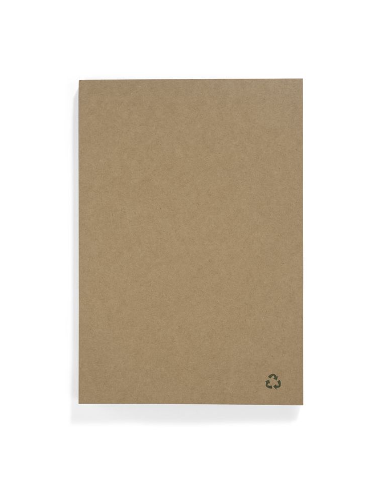 Notes w bloku GREN to wpisujący się w eko trendy sposób na sporządzanie notatek. Zarówno okładka jak i kartki są wykonane z przyjaznego środowisku papieru. Notes prezentuje naturalny, minimalistyczny design. Na odwrocie symbol recyklingu. Notes zawiera 100 kartek formatu A5.