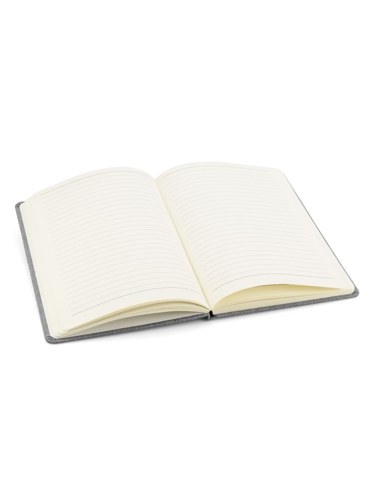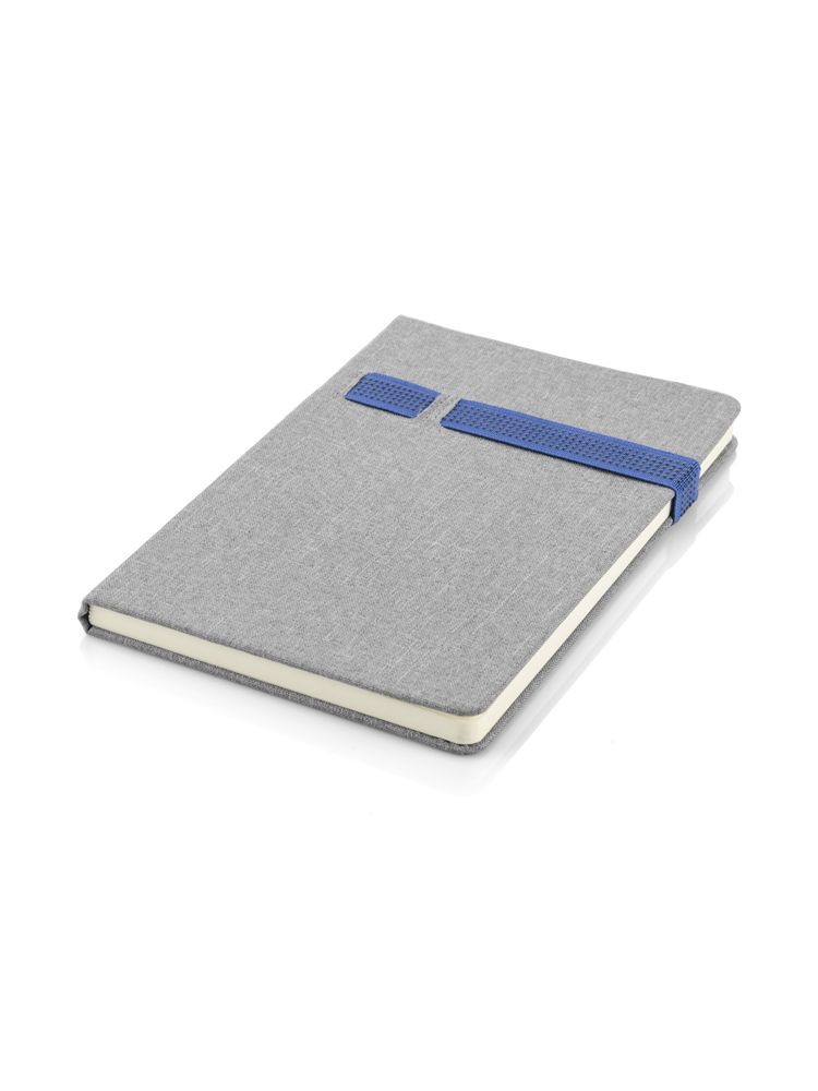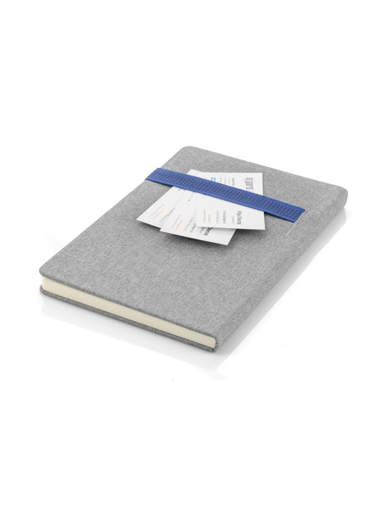 Notes HOLDI posiada bardzo ciekawą okładkę w kolorze szarym, wyglądem przypominającą lniany materiał. Zamykany jest za pomocą kolorowej gumki, która może służyć również jako miejsce na długopisy lub inne niezbędne przedmioty.