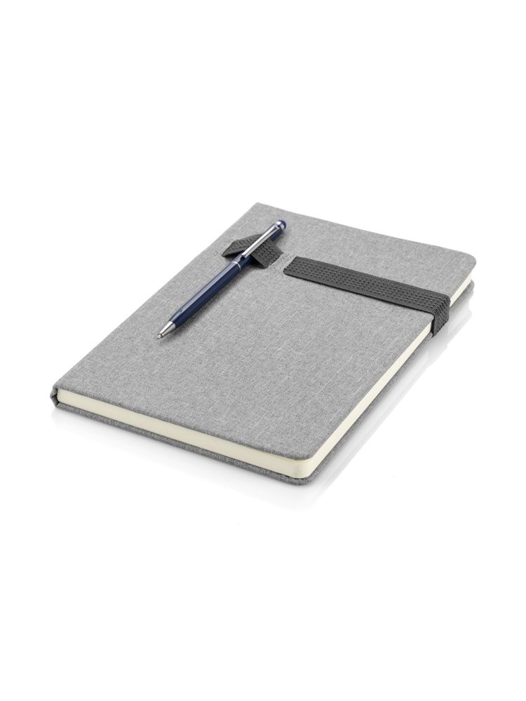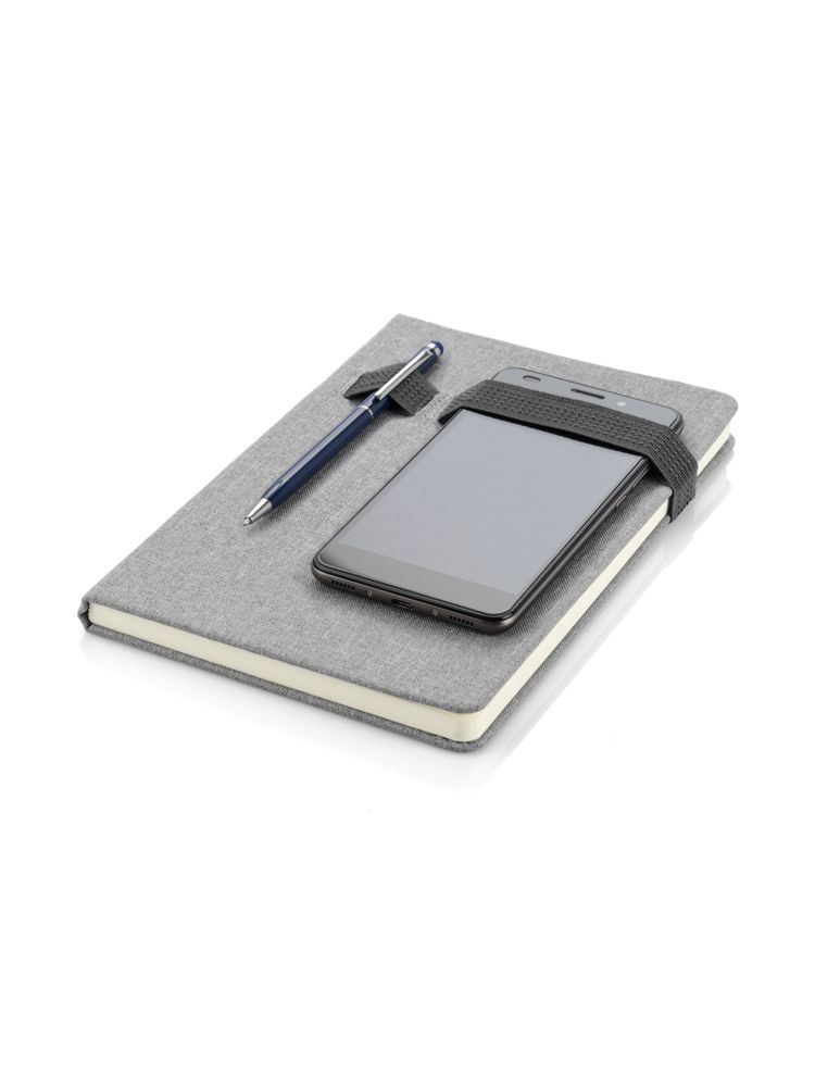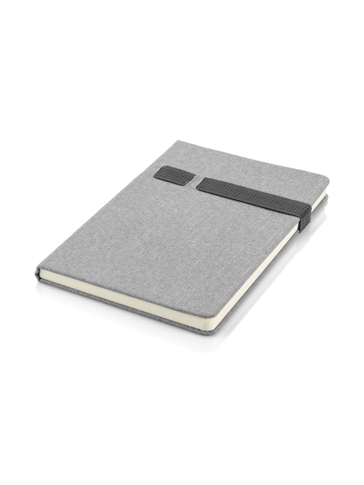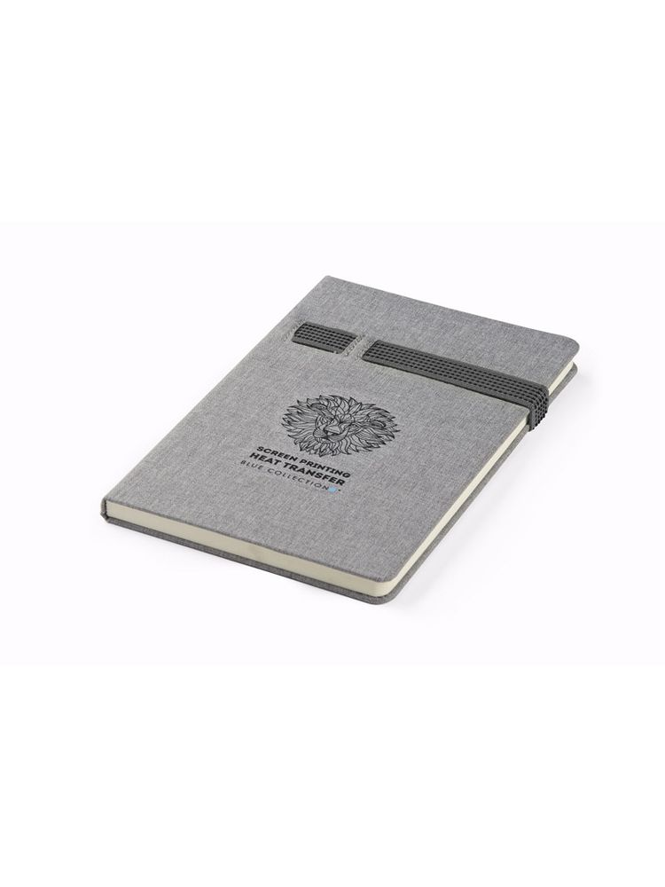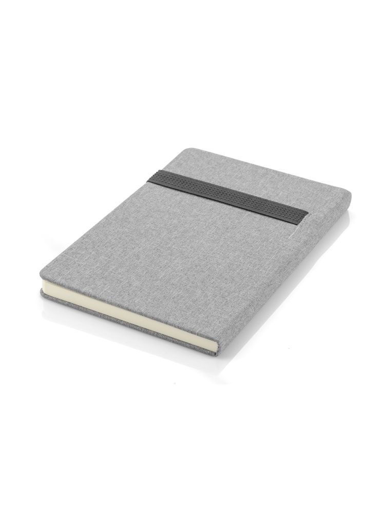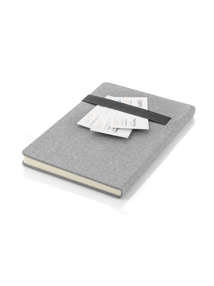 Notes HOLDI posiada bardzo ciekawą okładkę w kolorze szarym, wyglądem przypominającą lniany materiał. Zamykany jest za pomocą kolorowej gumki, która może służyć również jako miejsce na długopisy lub inne niezbędne przedmioty.