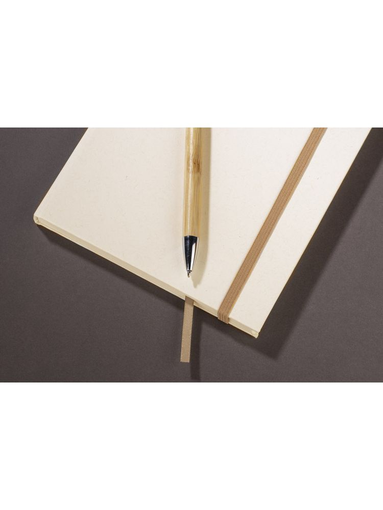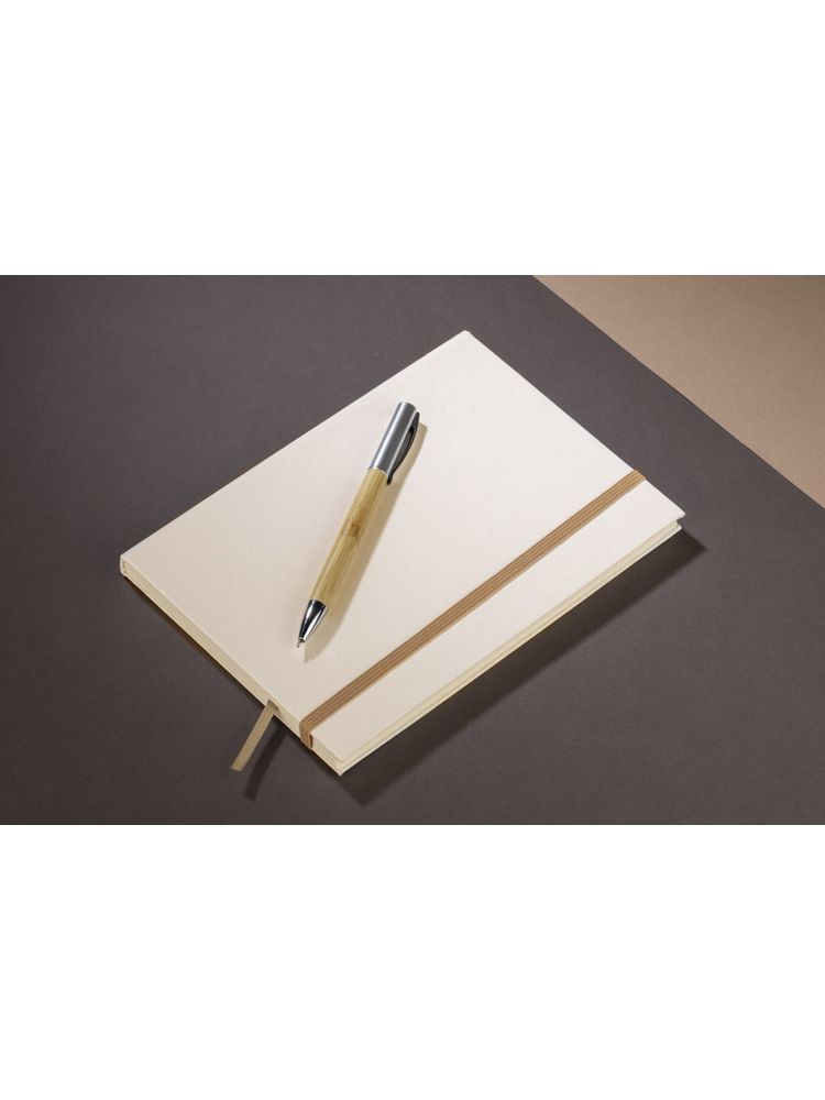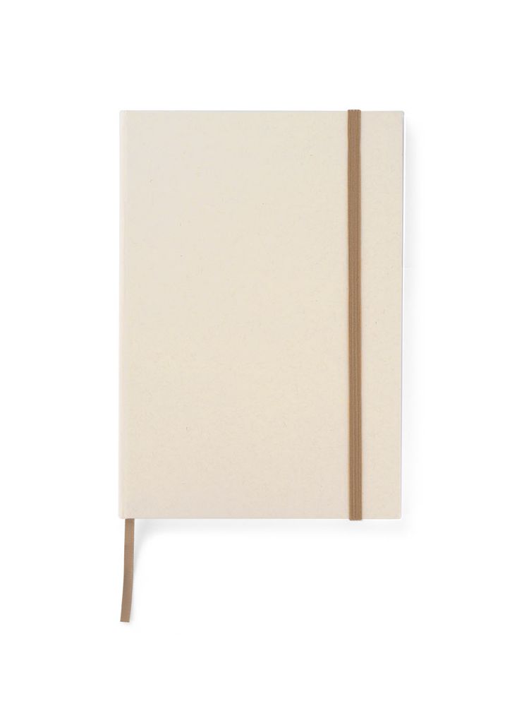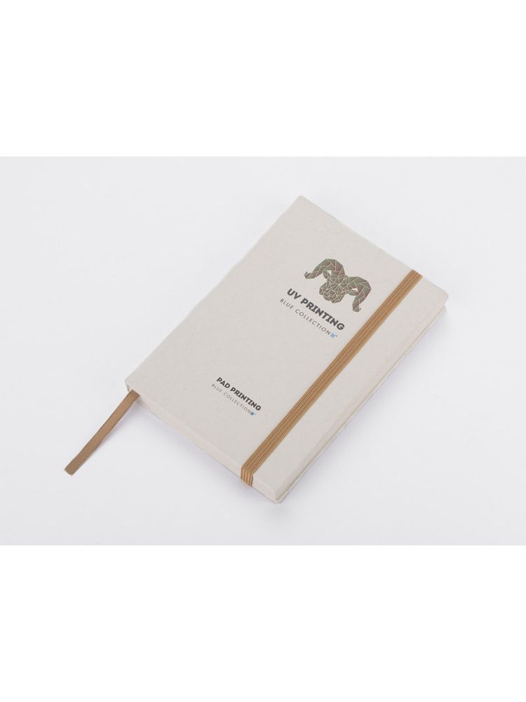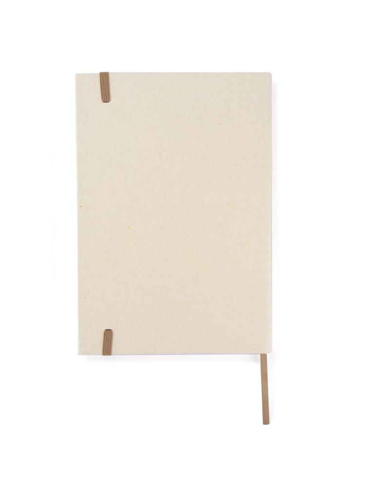 Okładka i kartki w notesie zostały wyprodukowane z kartonów po mleku. Okładka zamykana za pomocą elastycznej gumki. Wewnątrz znajduje się wstążeczka pełniąca funkcję zakładki. Format A5, 80 gładkich kartek.
