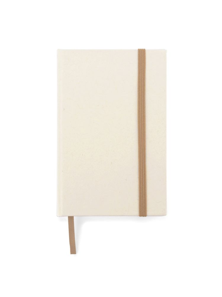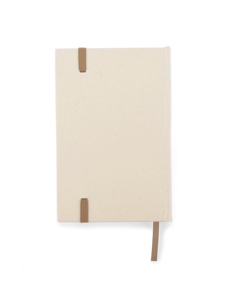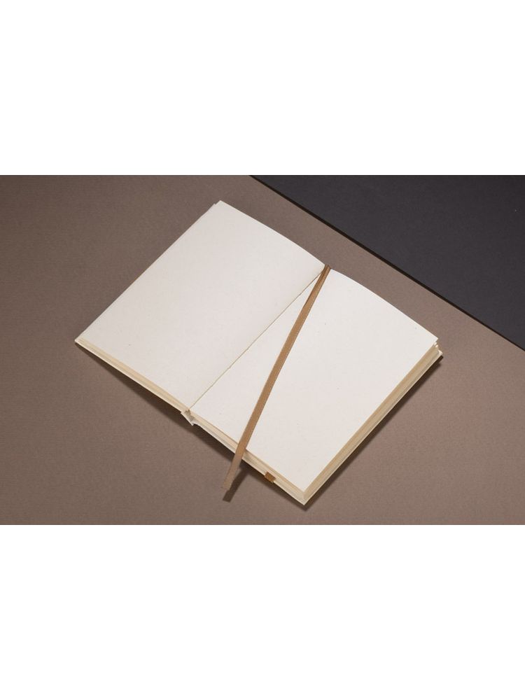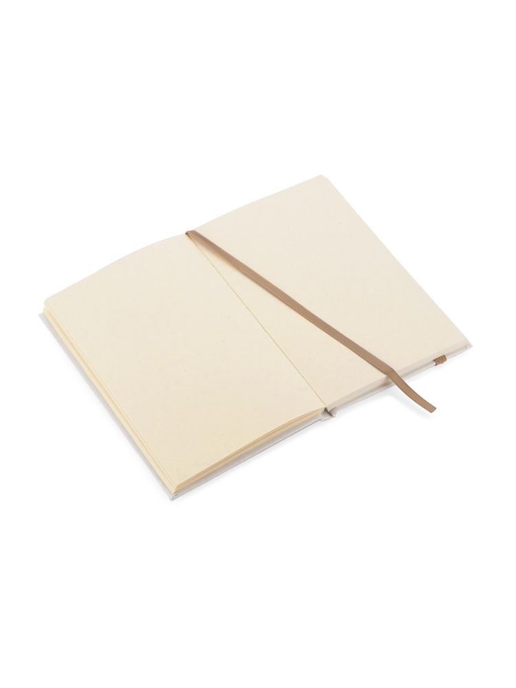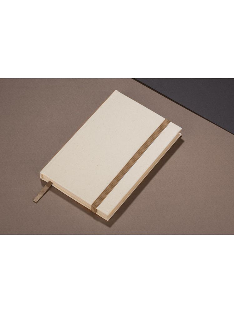 Okładka i kartki w notesie zostały wyprodukowane z kartonów po mleku. Okładka zamykana za pomocą elastycznej gumki. Wewnątrz znajduje się wstążeczka pełniąca funkcję zakładki. Format A6, 80 gładkich kartek.