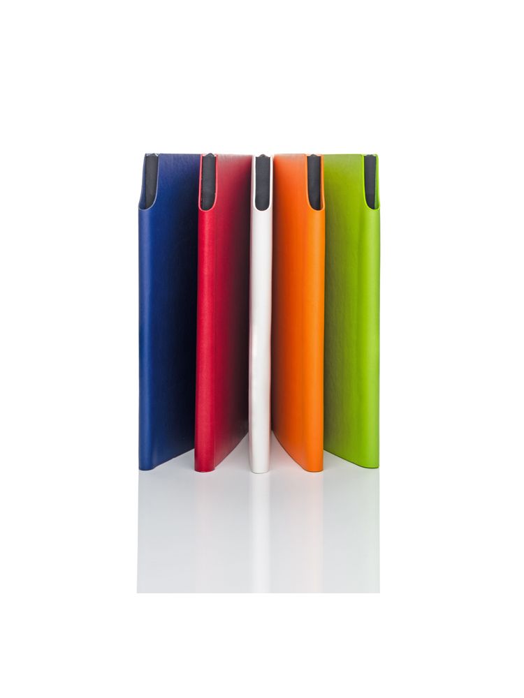 Notes formatu A5 w żywych, modnych kolorach. Notes zawiera 96 kartek w linie oraz praktyczną zakładkę – wstążeczkę. Okładka notesu wykonana z miękkiej ekoskóry, nieusztywniana. Wewnątrz grzbietu notesu ciekawie zaprojektowane miejsce na długopis.
