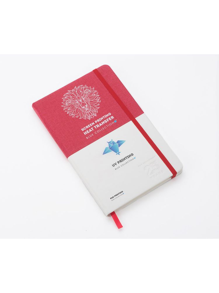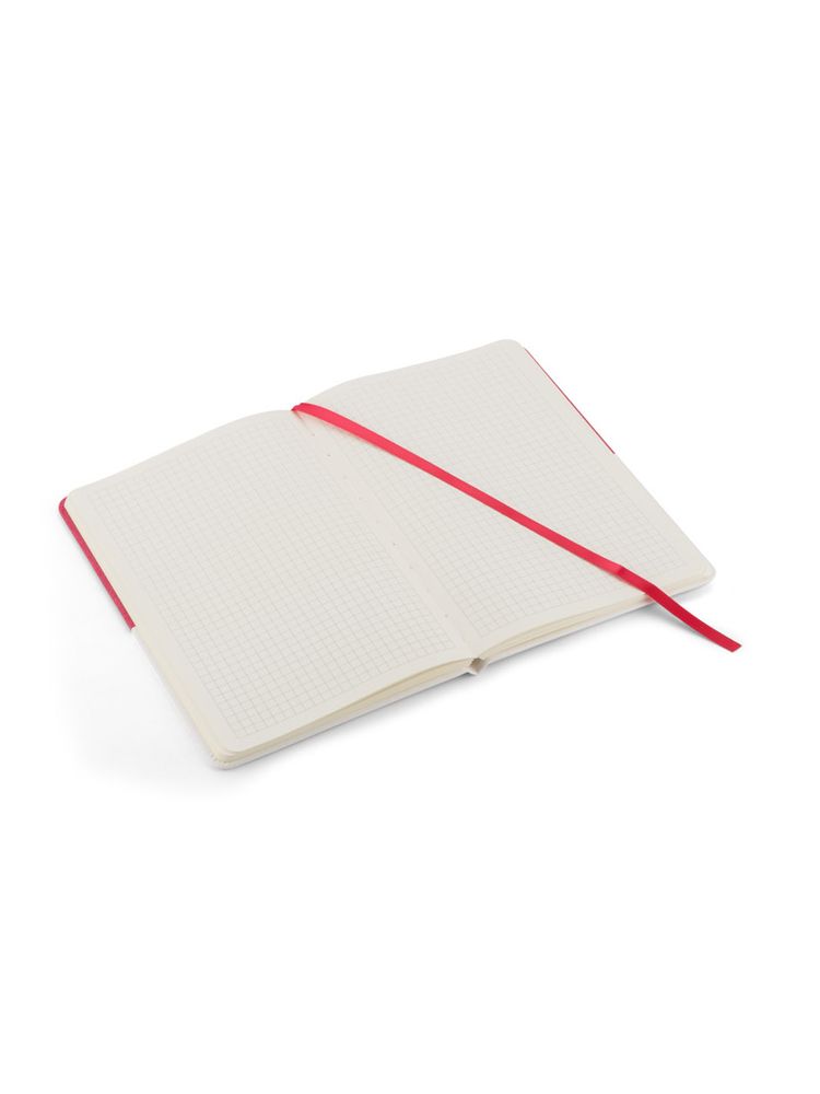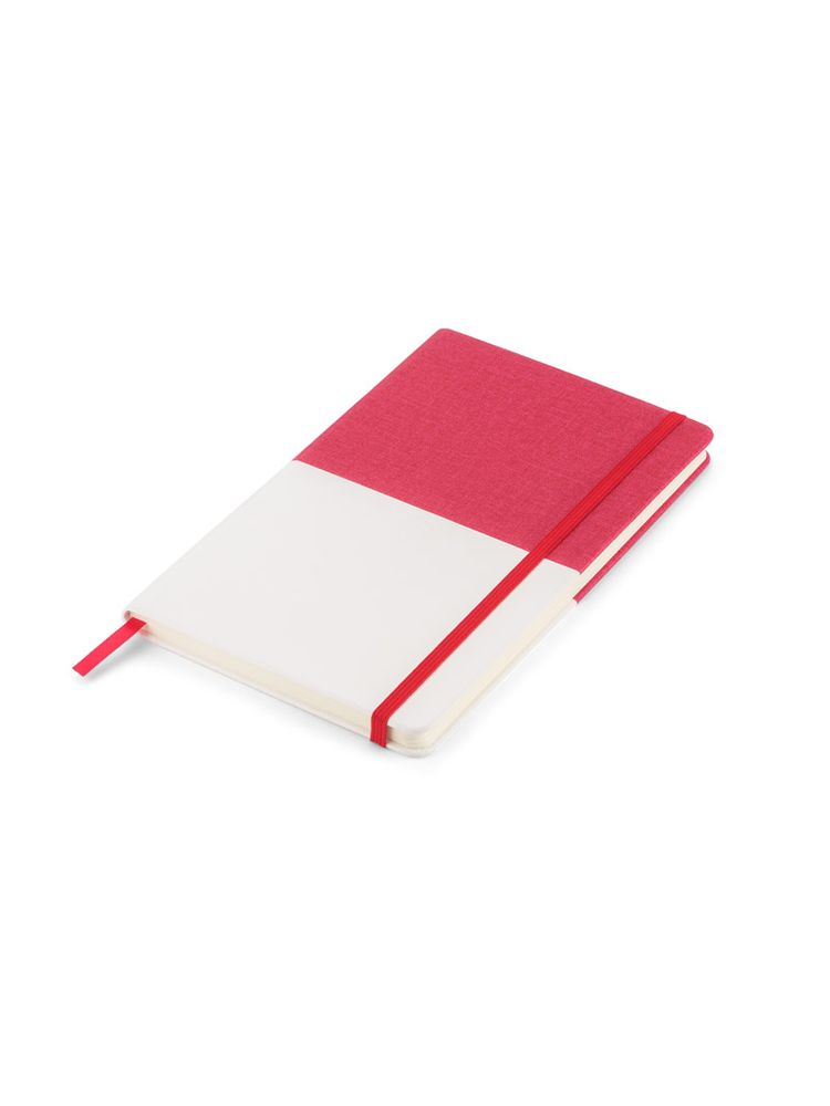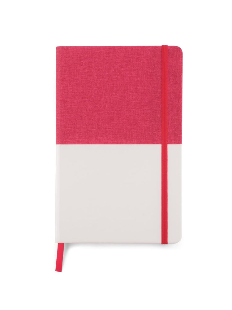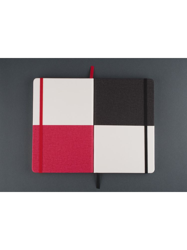 Notes TWIN w formacie zbliżonym do A5 posiada 80 kartek w kratkę w kolorze ecru. Sztywna okładka wykonana z połączenia materiału PU i tworzywa o fakturze tkaniny. Posiada zakładkę – wstążeczkę dobraną pod kolor okładki. Notes zamykany za pomocą gumki. Dostępny w 5 intensywnych kolorach.