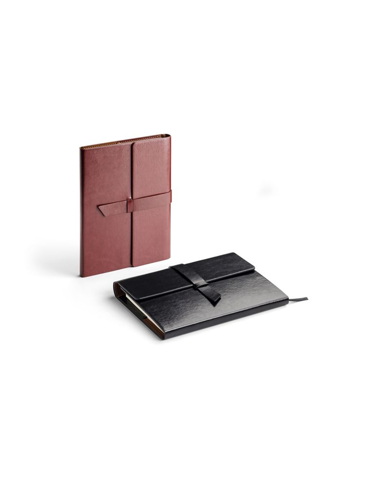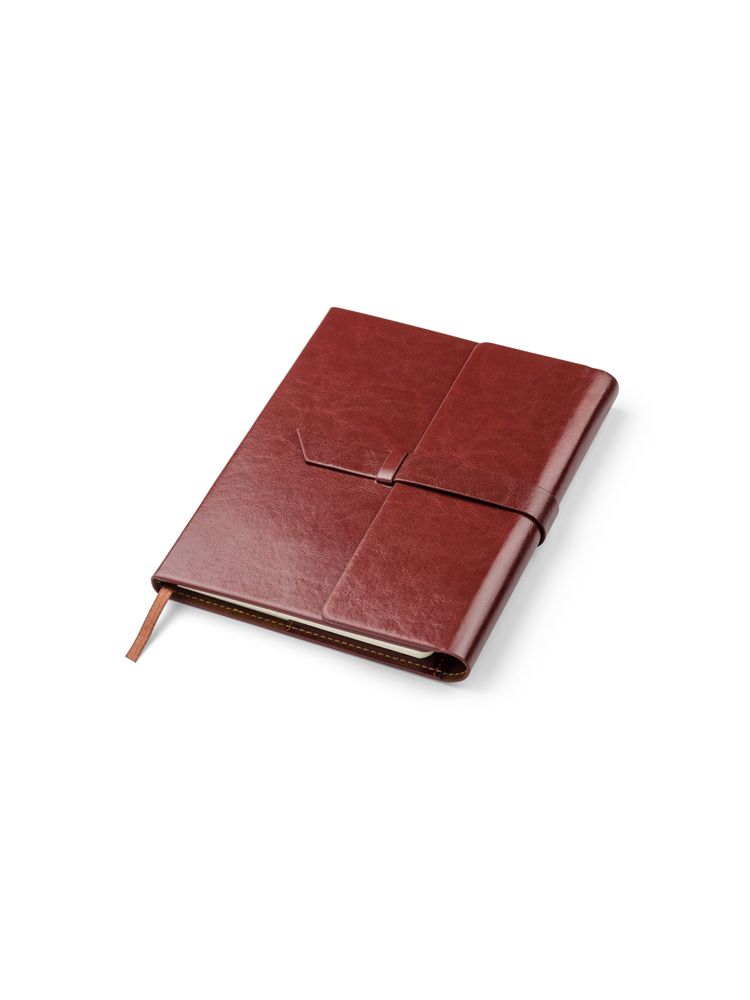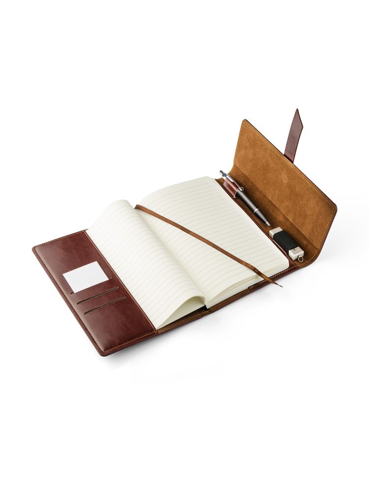 VASCO to elegancki notes formatu A5 w klasycznej okładce wykonanej z ekoskóry. Notes zawiera 80 kartek w linie oraz praktyczną wstążeczkę – zakładkę. Wewnątrz okładki miejsce na 3 wizytówki, długopis oraz pamięć USB. Okładka nie jest umocowana na stałe do bloku notesu, tylko nasuwana na pierwsze kartki, co daje możliwość wymiany notesu. Notes zamykany za pomocą paska z ekoskóry.