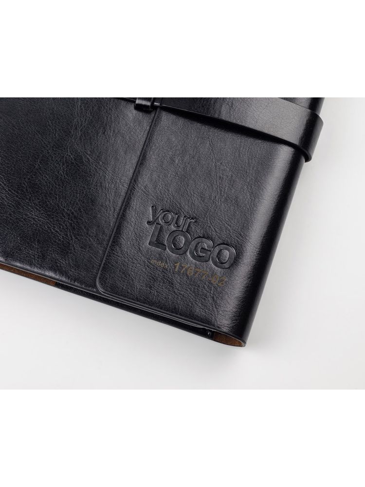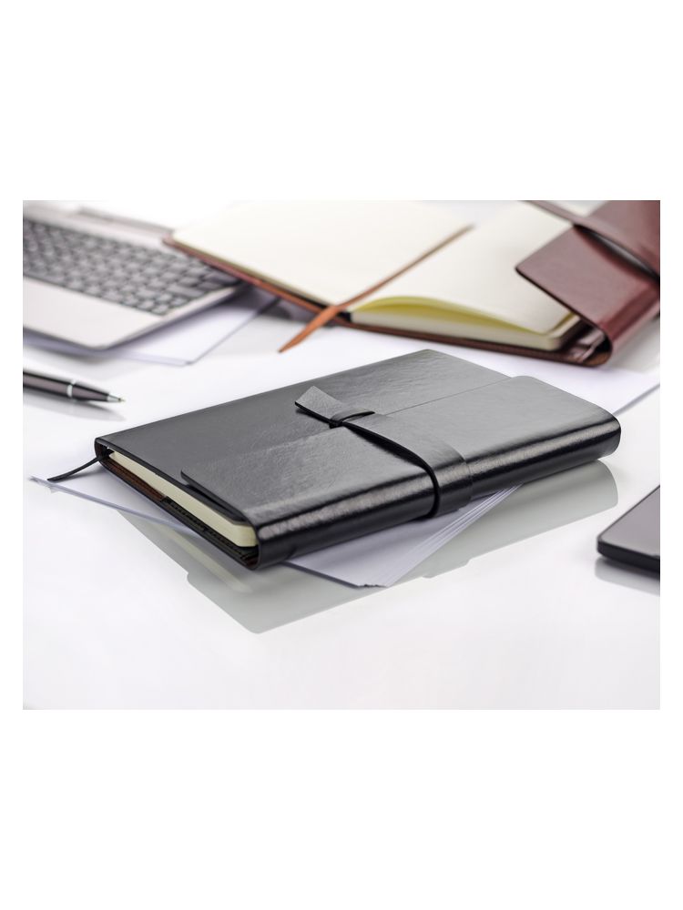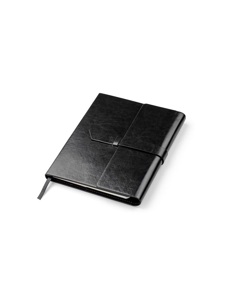 VASCO to elegancki notes formatu A5 w klasycznej okładce wykonanej z ekoskóry. Notes zawiera 80 kartek w linie oraz praktyczną wstążeczkę – zakładkę. Wewnątrz okładki miejsce na 3 wizytówki, długopis oraz pamięć USB. Okładka nie jest umocowana na stałe do bloku notesu, tylko nasuwana na pierwsze kartki, co daje możliwość wymiany notesu. Notes zamykany za pomocą paska z ekoskóry.