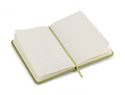 Gustowny notes A6 z kolorową gumką wykonany z ekoskóry PU. Notes zawiera 80 kartek ecru w linie koloru pomarańczowego. Logo nadrukujemy na okładce.