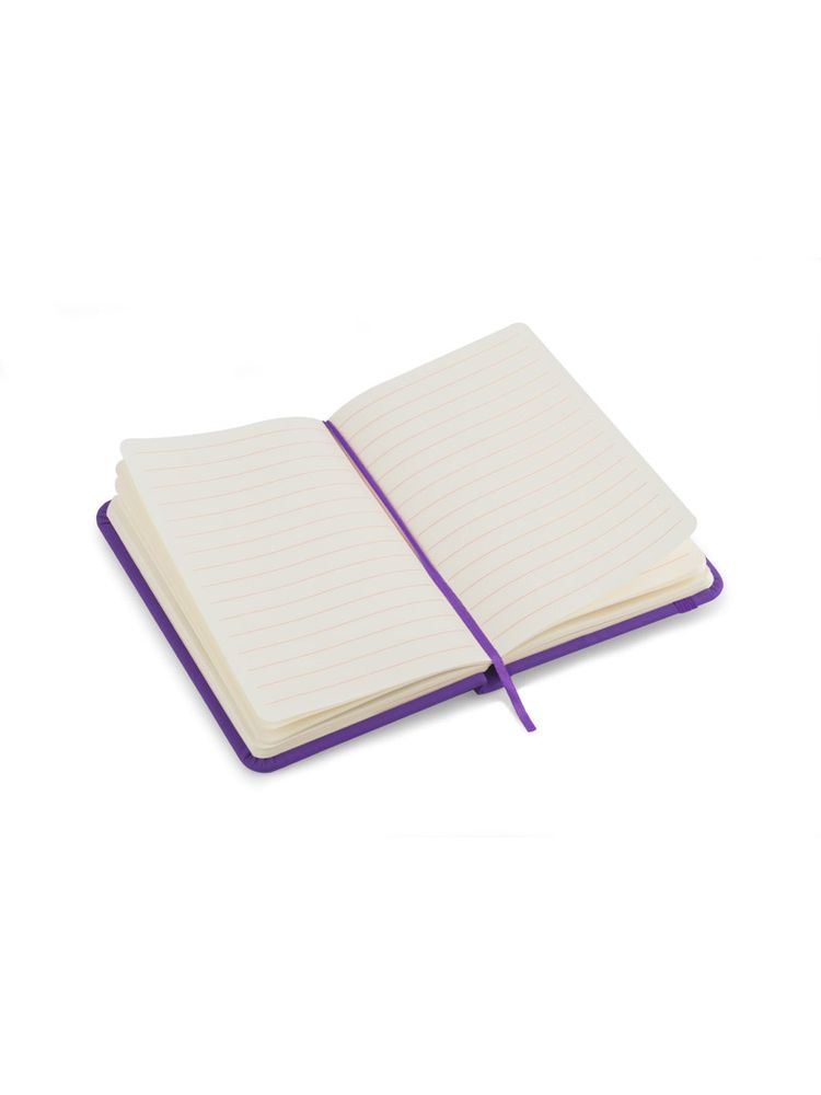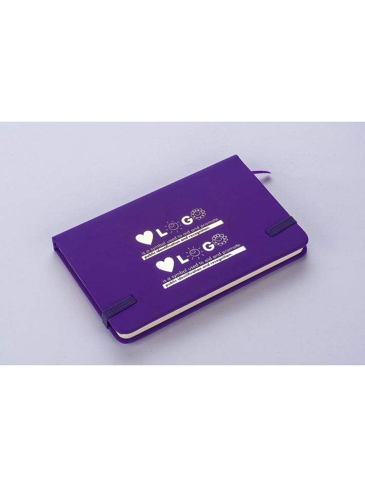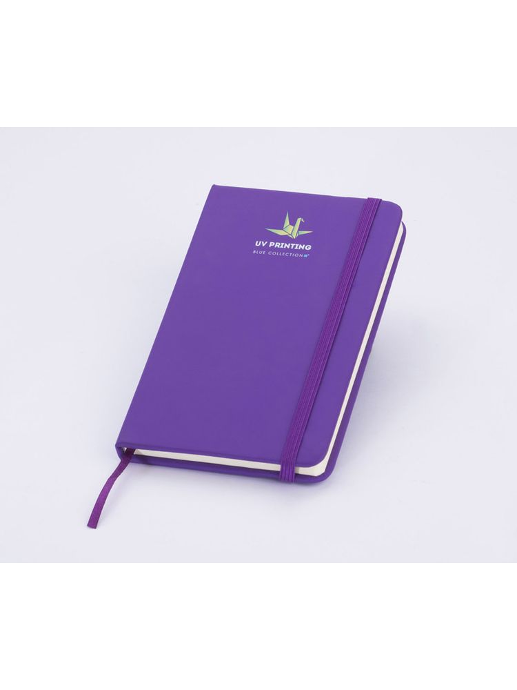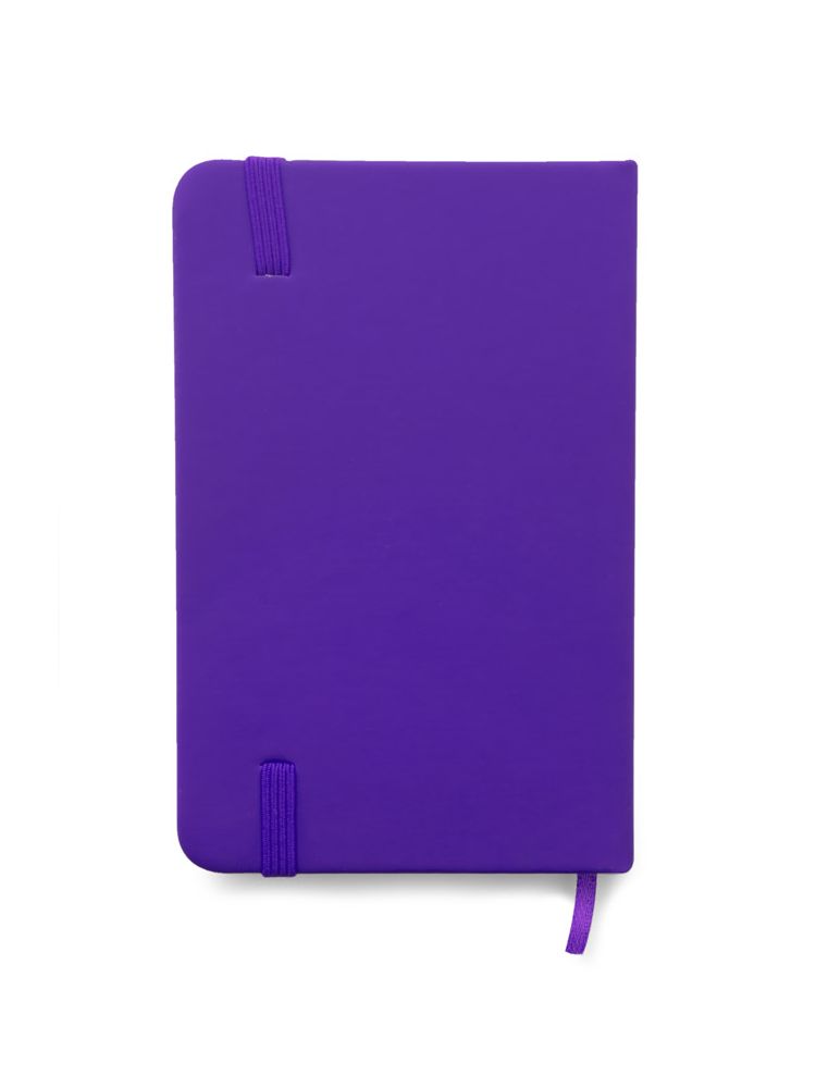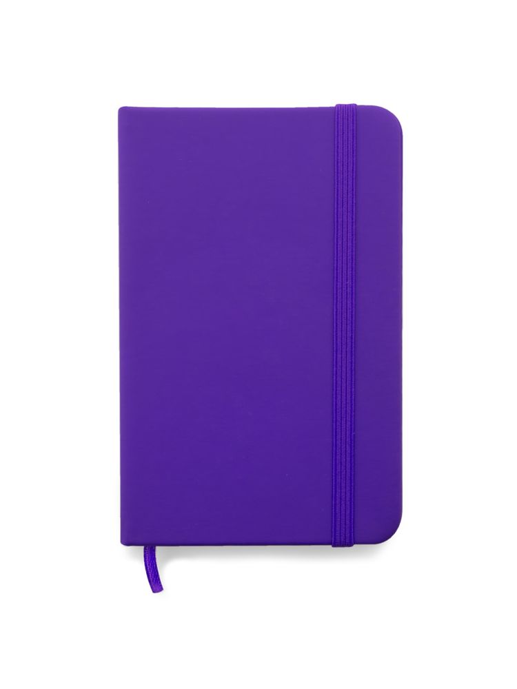 Gustowny notes A6 z kolorową gumką wykonany z ekoskóry PU. Notes zawiera 80 kartek ecru w linie koloru pomarańczowego. Logo nadrukujemy na okładce.