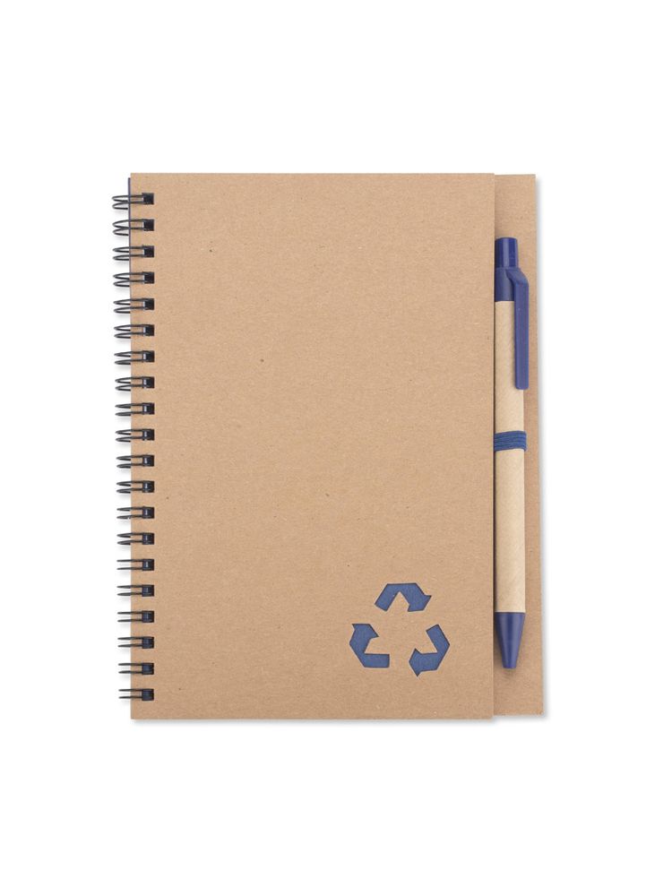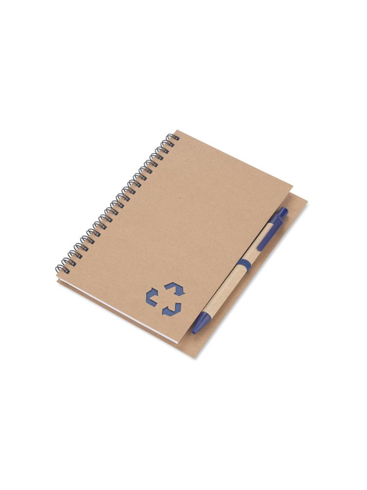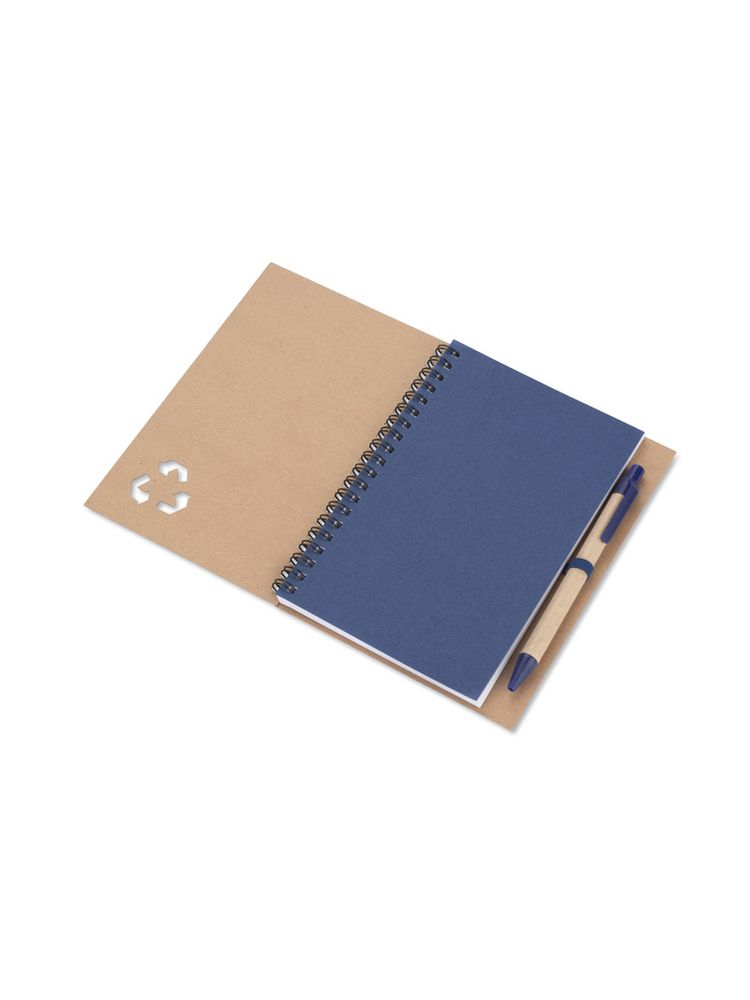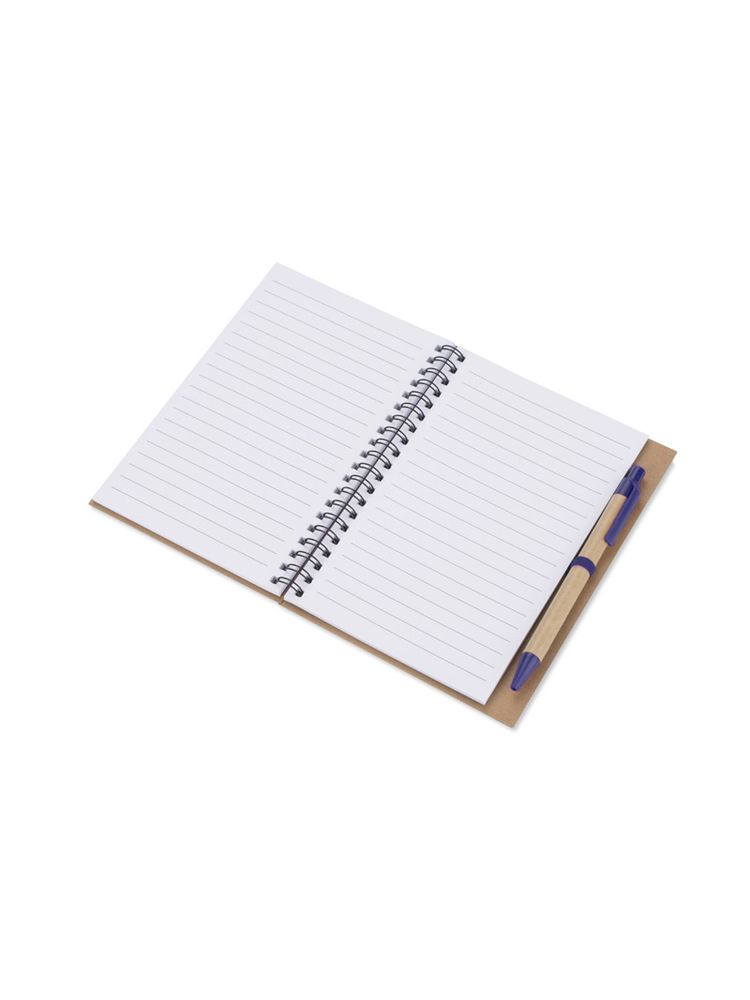 Notes SERENO na spirali w klasycznej, papierowej okładce. Posiada 70 kartek w linie. Do notesu dołączony jest w wyprofilowanym miejscu długopis, którego korpus wykonany jest z papieru. Wykończenia długopisu pasują kolorystycznie z przekładką notesu. Wkład w długopisie w kolorze niebieskim.