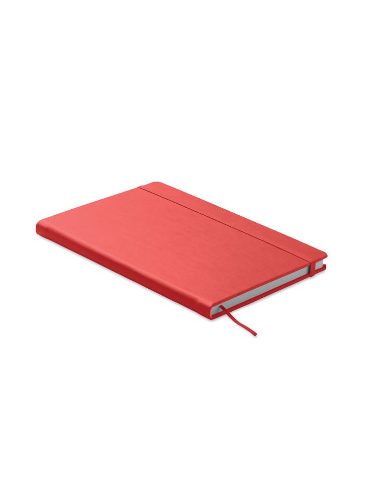 Notatnik A5 z twardą okładką z PU. 200 strony w linie (100 kartek) z papieru z recyklingu (80 g/m²). Dopasowana gumka zamykająca i tasiemka do zaznaczania stron. Wyprodukowano w UE.