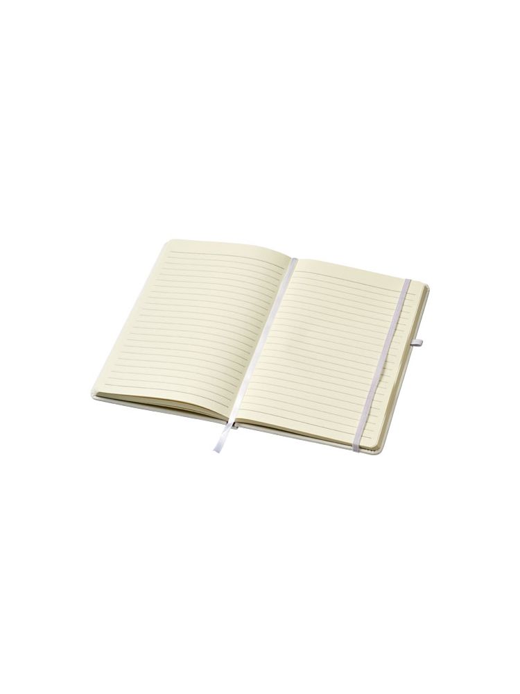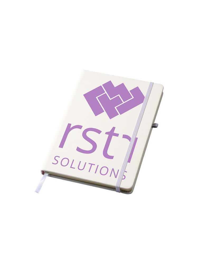 A5 reference size notebook with a matching colour elastic closure, pen loop, and ribbon. Includes 96 sheets of 70g/m2 lined paper. Soft feel PU cover.