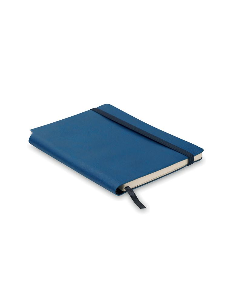 Notatnik A5 z miękką okładką z PU. Oprawiony w pudełko. 160 stron w linie z papieru z recyklingu (80 arkuszy). Dopasowany elastyczny pasek i zakładka ze wstążki. Rozszerzana kieszeń wewnętrzna z tyłu. Uchwyt na długopis na grzbiecie.