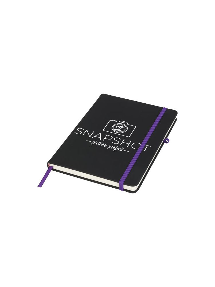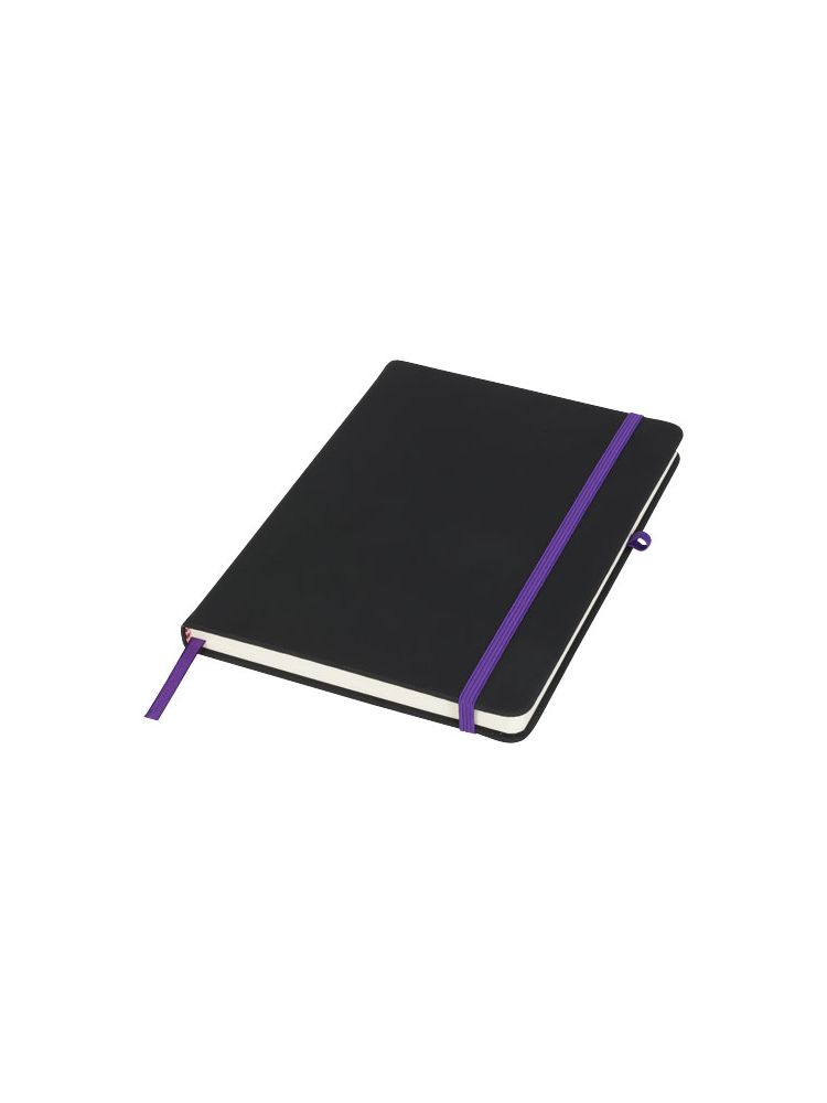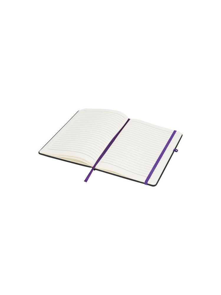 Notes Noir ma miękką, gładką i miękką okładkę z poliuretanu, dzięki czemu jest niezwykle przyjemna w dotyku. Każdy notes ma kolorowy pasek do zamykania, pętelkę na długopis i zakładkę ze wstążki. 96 kremowych kartek w linie (gramatura 70 g/m²).