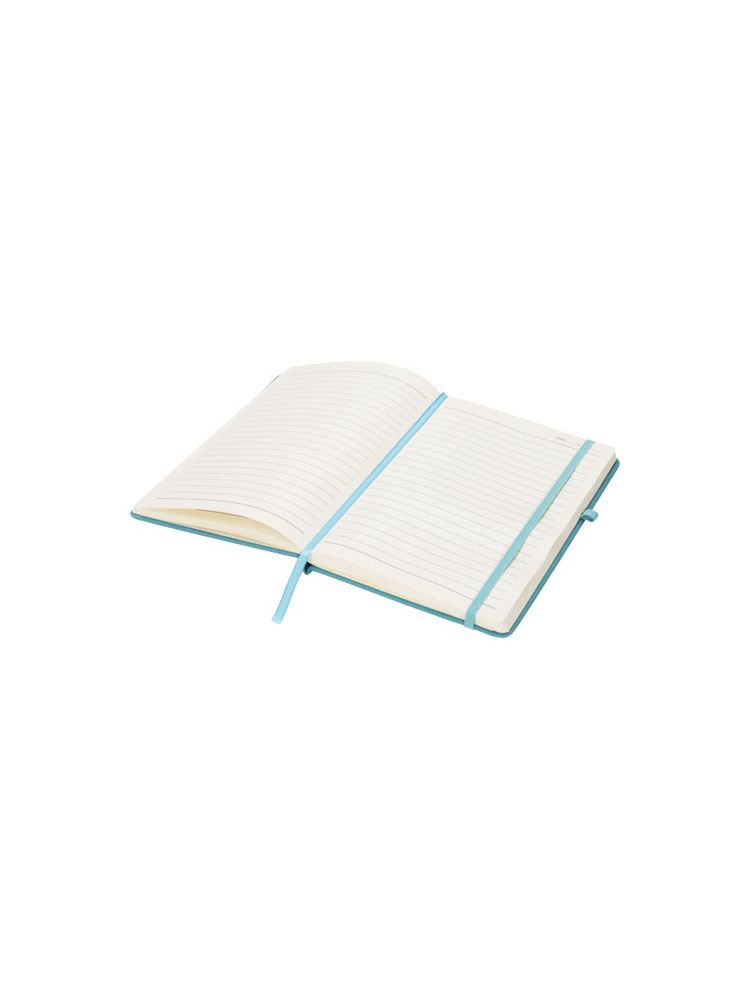 Seria Rivista to stylowe, nowoczesne notesy z wysokiej jakości, przyjemnymi w dotyku okładkami, idealnymi do ozdobienia własnym logo i informacjami o firmie. Dostępne w wybranych, nowoczesnych kolorach. Notes ma zamknięcie na gumkę, pętelkę na długopis, zakładkę ze wstążki oraz kieszeń na wewnętrznej stronie tylnej okładki. 128 kremowych kartek w linie (gramatura 70 g/m²).