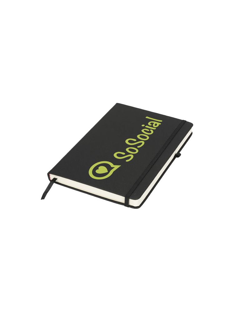 Seria Rivista to stylowe, nowoczesne notesy z wysokiej jakości, przyjemnymi w dotyku okładkami, idealnymi do ozdobienia własnym logo i informacjami o firmie. Dostępne w wybranych, nowoczesnych kolorach. Notes ma zamknięcie na gumkę, pętelkę na długopis, zakładkę ze wstążki oraz kieszeń na wewnętrznej stronie tylnej okładki. 128 kremowych kartek w linie (gramatura 70 g/m²).