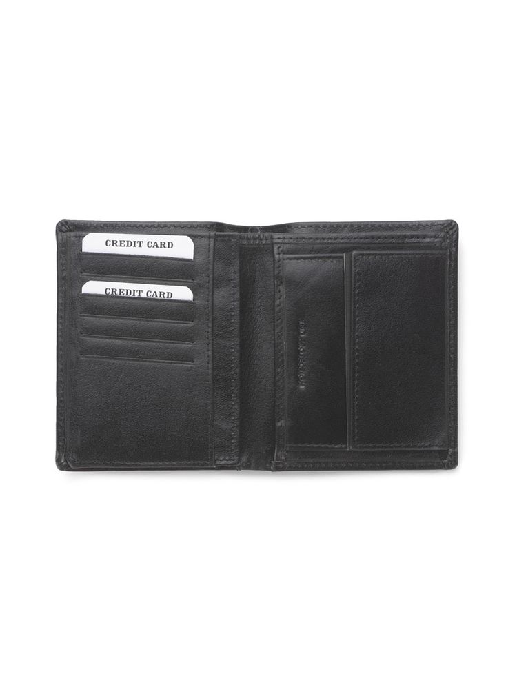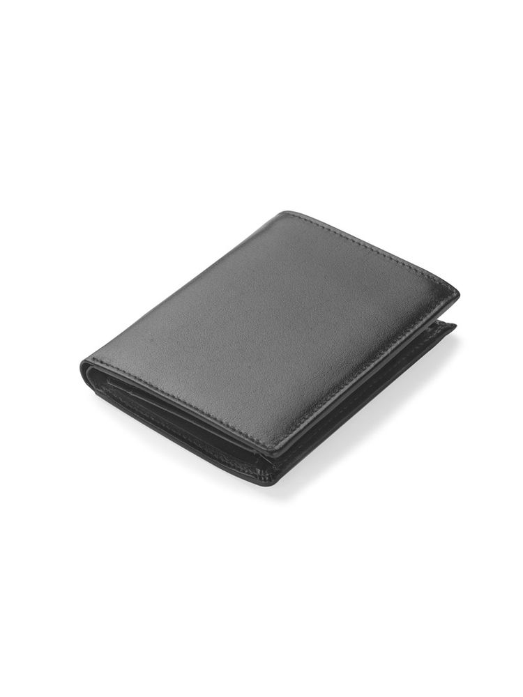 Portfel wyposażony w miejsce na bilon, 2 kieszenie na banknoty, 6 miejsc na karty kredytowe, 5 kieszeni na dokumenty. Dodatkowo został wzbogacony o folię zabezpieczającą przed kradzieżą danych z kart kredytowych, blokując sygnał RFID. Portfel pakowany w drewniane pudełko. Na portfelach wykonujemy tłoczenie lub grawer. Istnieje także możliwość wykonania graweru na pudełku.