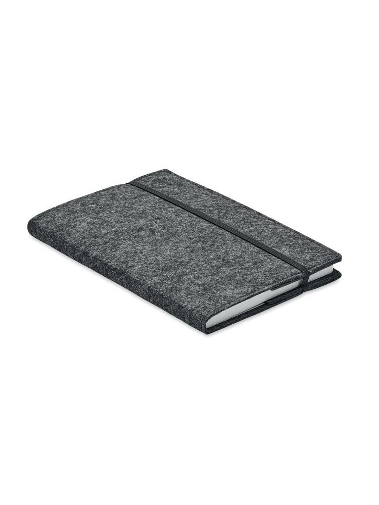 Teczka konferencyjna A4 z filcu RPET. Notatnik na 100 kartek w linie z papieru z recyklingu z elastycznym uchwytem na długopis.
