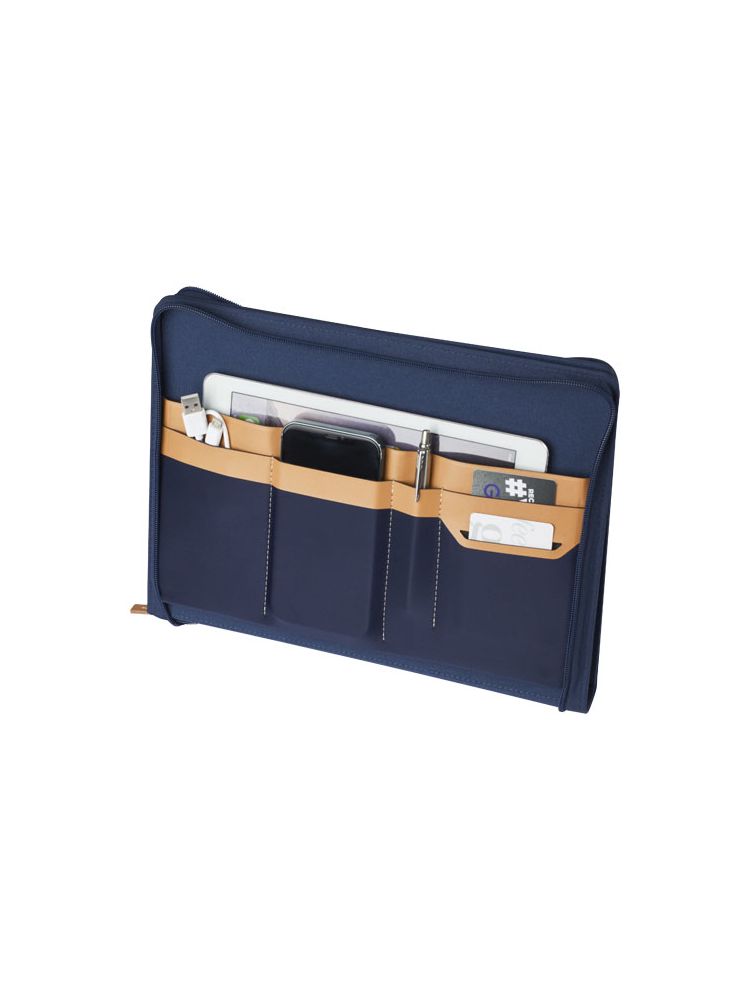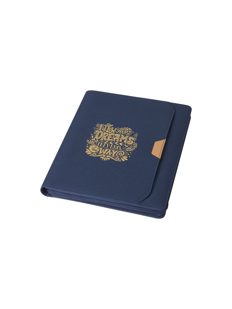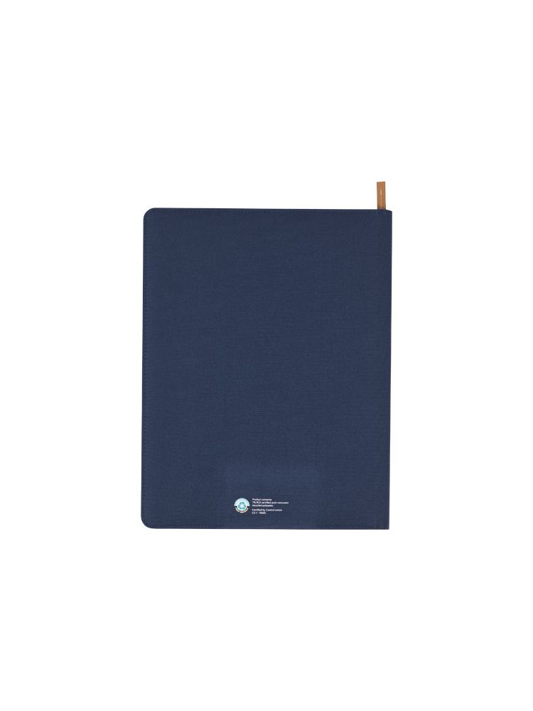 Nomumi teczka z notatnikiem do pisania częściowo wykonana z poużytkowego poliestru pochodzącego z recyklingu z certyfikatem RCS, co czyni ją bardziej zrównoważonym wyborem, ponieważ pomaga zmniejszyć zużycie pierwotnego surowca. Posiada zapięcie na zamek błyskawiczny, pętelkę na długopis, kieszeń harmonijkową i 20 białych kartek w linie z papieru z recyklingu o gramaturze 70 g/m2 pochodzącego ze zrównoważonych źródeł. Pióro i inne akcesoria widoczne na zdjęciach nie są dołączone do tego produktu.