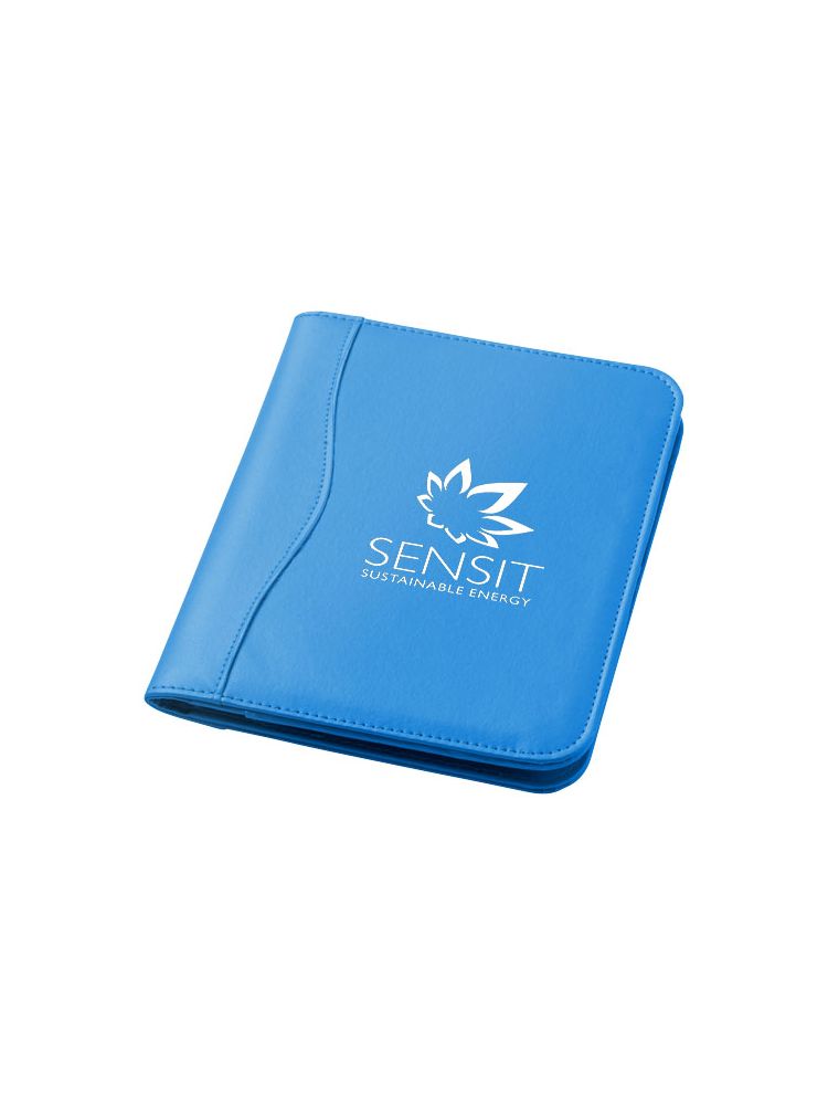 Portfolio z kieszeniami na dokumenty, pętelką na długopis oraz notatnikiem zawiarającym 20 kartek w linie. Nie zawiera długopisu i akcesoriów.