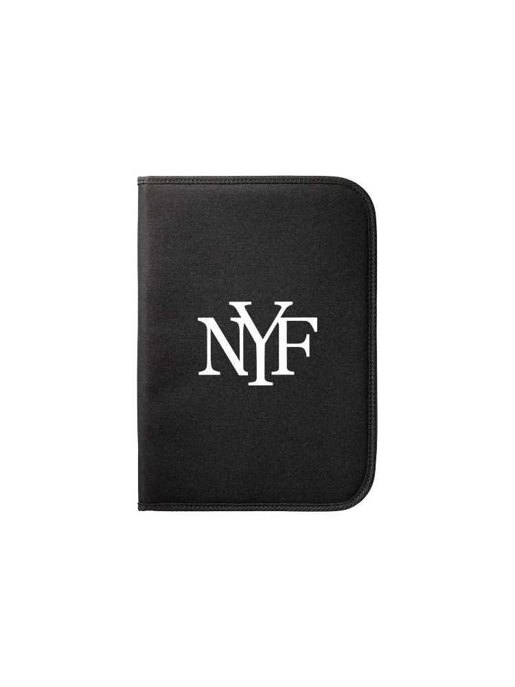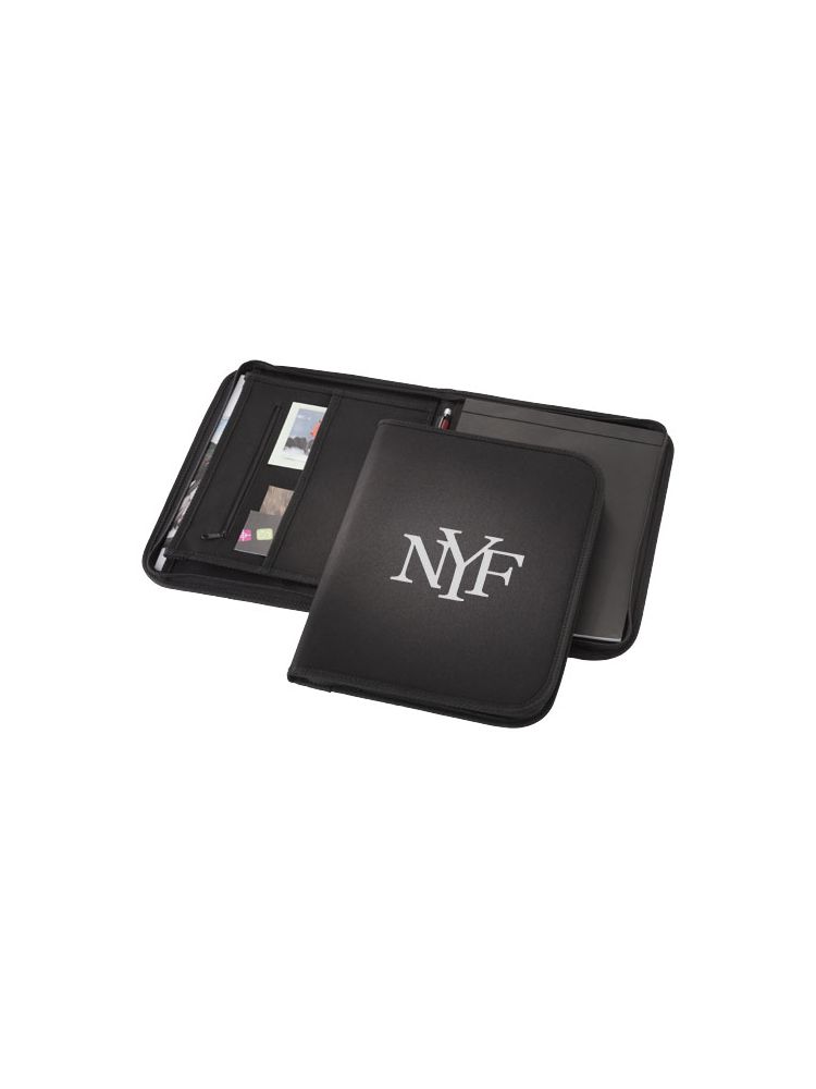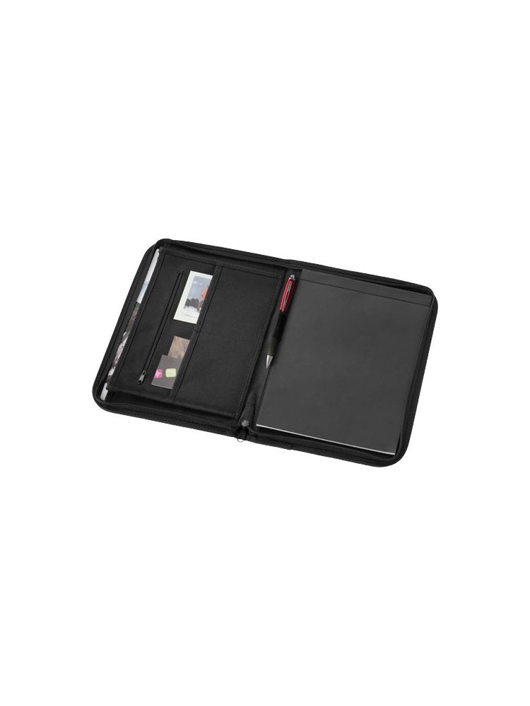 Portfolio zapinane na zamek z kieszeniami na dokumenty oraz 20-kartkowym notesem w linie. Zestaw nie zawiera długopisu i akcesoriów.