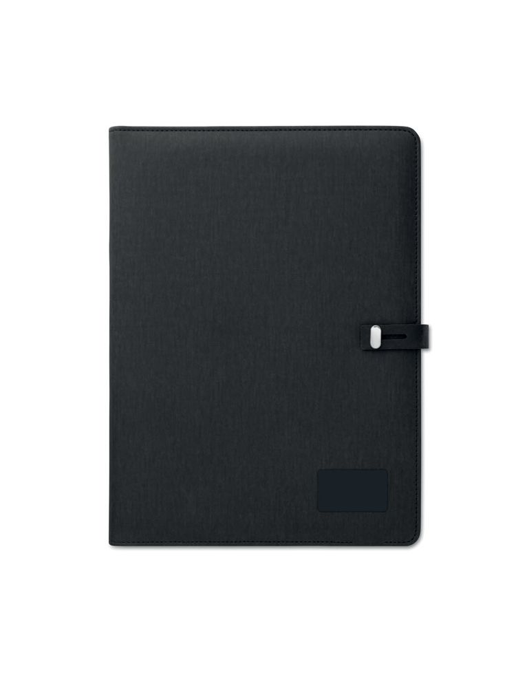 Teczka A4 z wykończeniem lniano-PU, z zamknięciem, zamykana na zatrzask. Ładowanie bezprzewodowe DC5V/1A. Power bank o pojemności 4000 mAh z łączem micro USB na złącze typu C. Notes z 20 kartkami w linie. Zawiera uchwyt na karty oraz uchwyt na długopis. Czarna aluminiowa płytka idealna do umieszczenia logo.