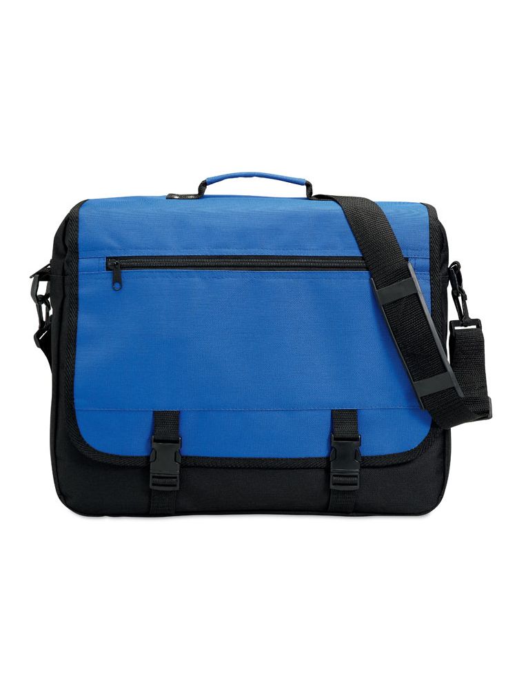 Torba na dokumenty z przednią kieszenią zamykaną na zamek oraz 2 klamry. Wykonana z poliestru 600D. Odpinany i regulowany pasek na ramię.