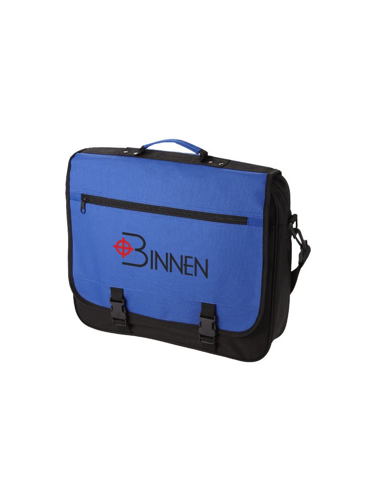 Torba wystawowa z regulowanym pasem na ramię oraz klapą zapinaną na sprzączki. Posiada przegrodę główną na zamek błyskawiczny oraz kilka otwartych kieszonek pod klapką.