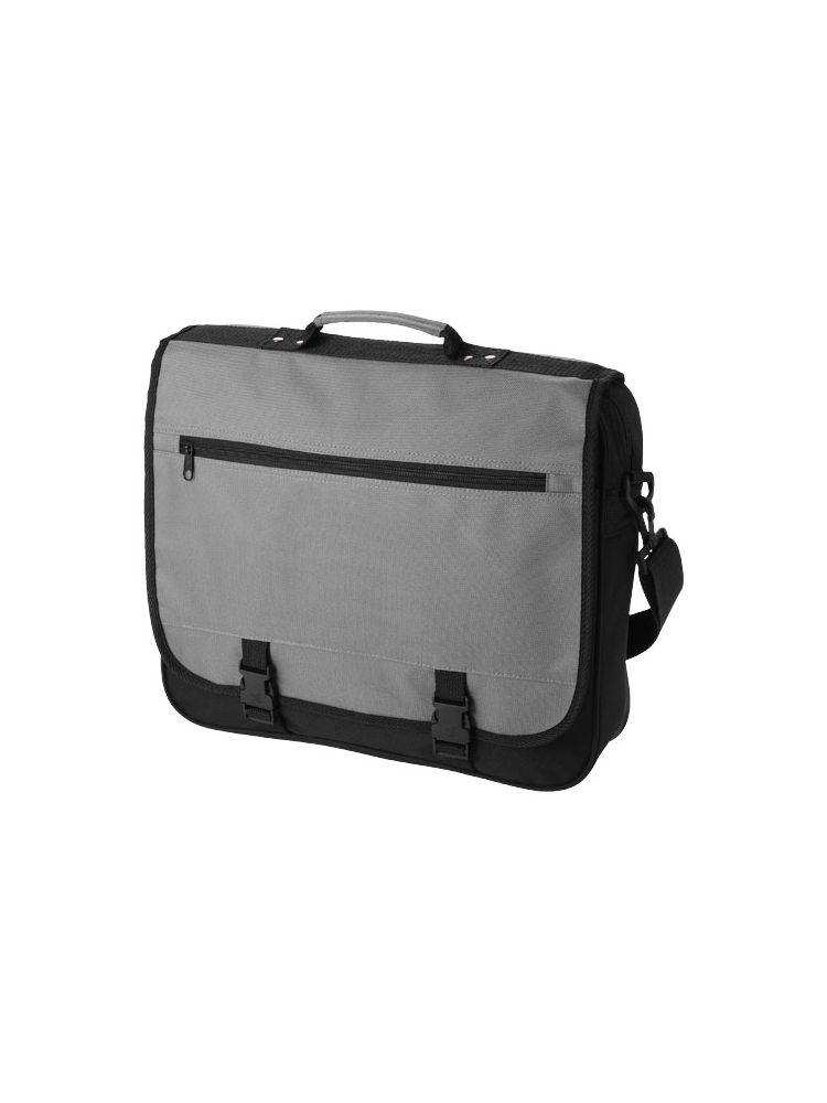 Torba wystawowa z regulowanym pasem na ramię oraz klapą zapinaną na sprzączki. Posiada przegrodę główną na zamek błyskawiczny oraz kilka otwartych kieszonek pod klapką.