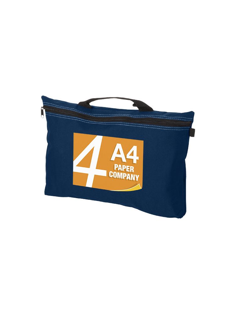 Torba konferencyjna Orlando to produkt, który dzięki dużej powierzchni nadruku może z łatwością skraść show na każdej konferencji, targach lub innych wydarzeniach. Orlando jest wykonana z mocnego, uniwersalnego poliestru 600D, zamykana i otwierana na zamek błyskawiczny, a na jej zewnętrznej stronie znajduje się wygodna pętelka na długopis. Oferuje wystarczająco dużo miejsca do przechowywania dokumentów o rozmiarze do A4, a poza tym torba jest łatwa do przenoszenia za pomocą uchwytu do przenoszenia.