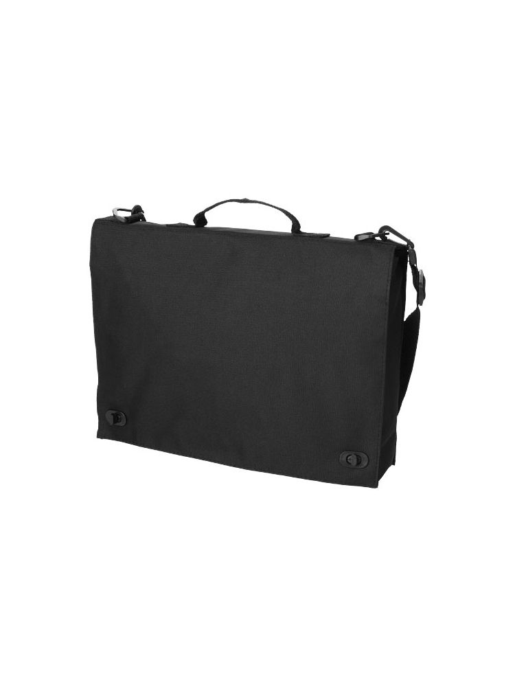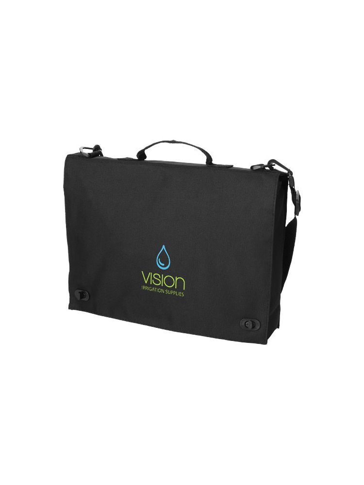 Torba konferencyjna z uchwytem, regulowanym paskiem na ramię, zamknięciem na sprzączkę oraz kilkoma kieszeniami na dokumenty.
