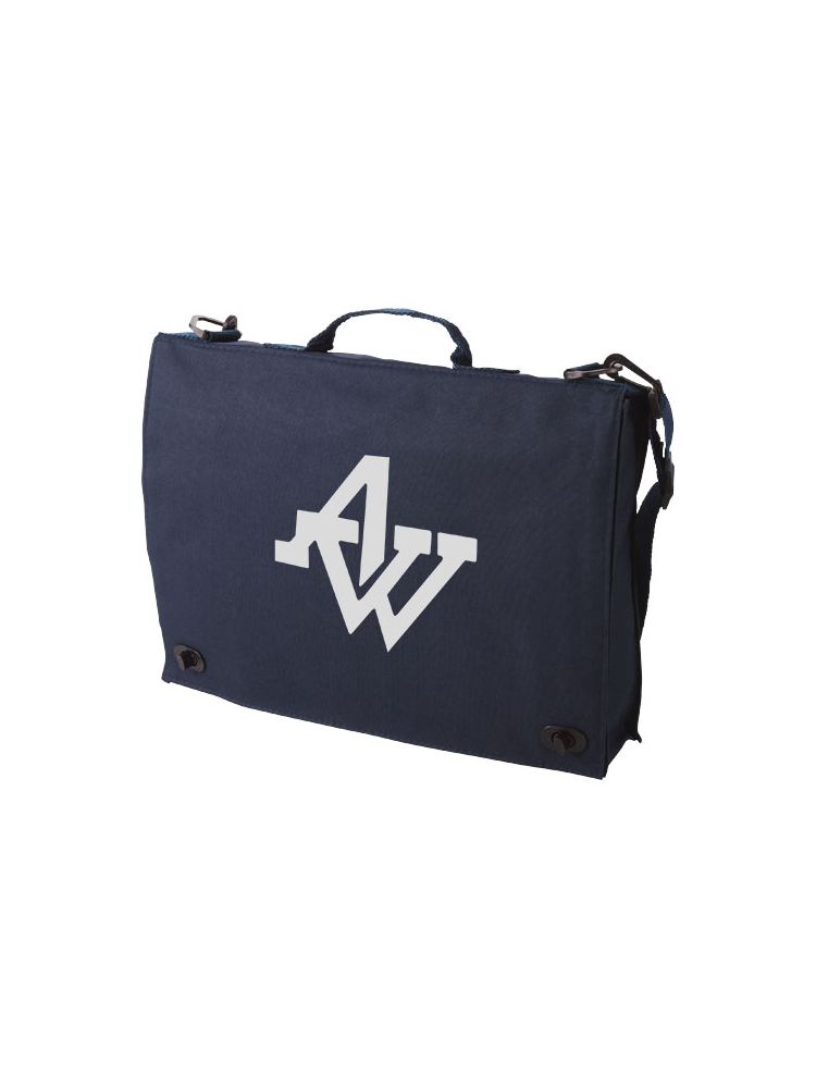 Torba konferencyjna z uchwytem, regulowanym paskiem na ramię, zamknięciem na sprzączkę oraz kilkoma kieszeniami na dokumenty.