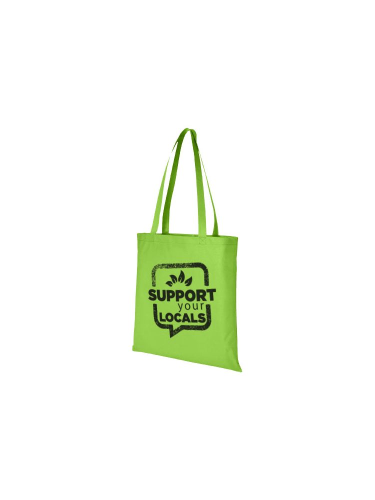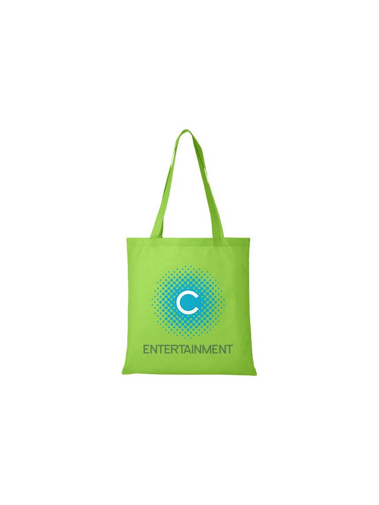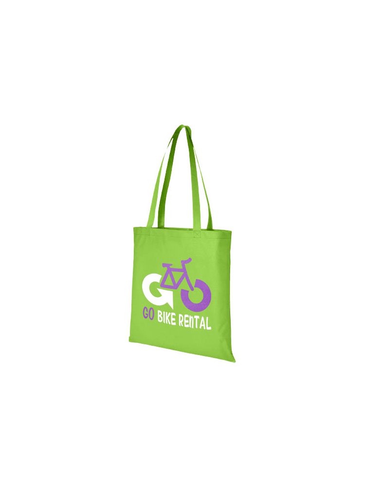 Potrzebujesz dobrej torby na każde targi lub konferencję? Duża torba z włókniny Zeus to doskonała opcja. Jej smukły design sprawia, że jest to model elegancki i odpowiedni do przenoszenia lekkich przedmiotów, takich jak notatnik i długopis. Rączki mają długość 29 cm, dzięki czemu można ją łatwo przewiesić przez ramię.