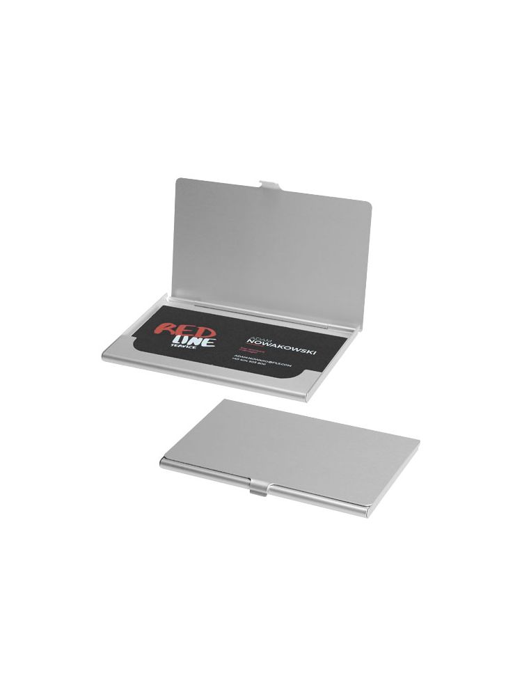 Aluminiowy wizytownik. Pomieści około 10 wizytówek.