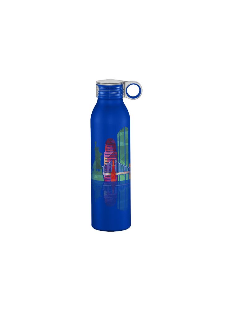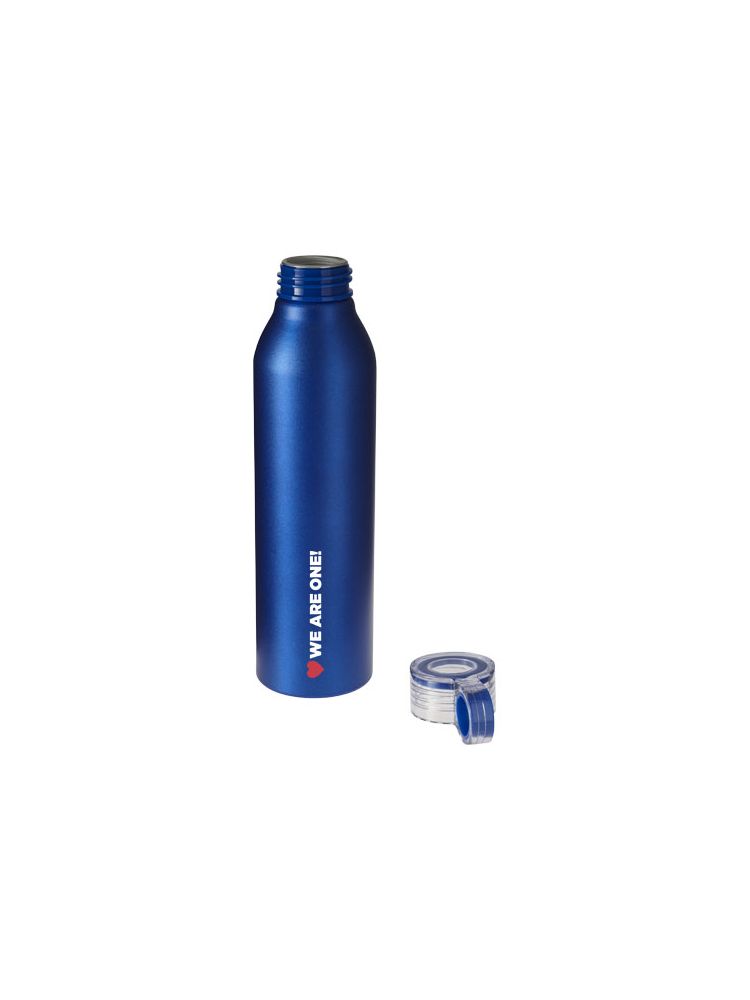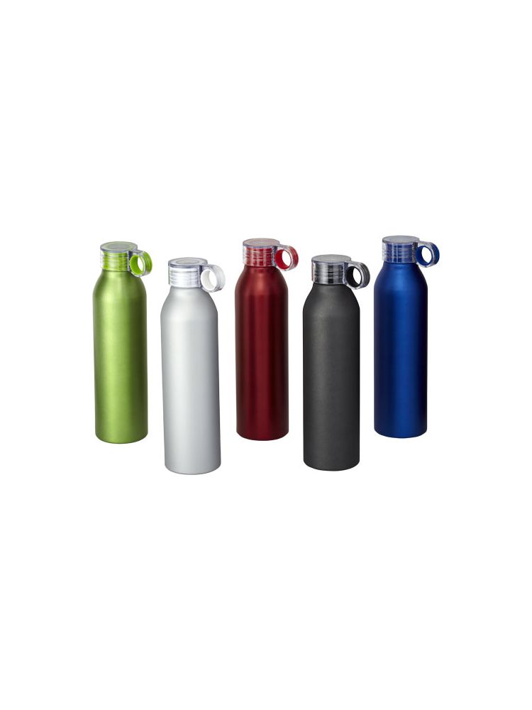 Ładny wygląd i lekkość – tak w skrócie można opisać aluminiową butelkę sportową Grom 650 ml. Przezroczysta zakręcana pokrywka jest odporna na rozlanie i ma pętelkę z funkcją color-pop, która ułatwia przenoszenie. Matowe, metaliczne wykończenie nadaje butelce stylowy wygląd. Niezależnie od tego, co chcemy uczcić, butelka Grom z pewnością ucieszy każdego obdarowanego.
