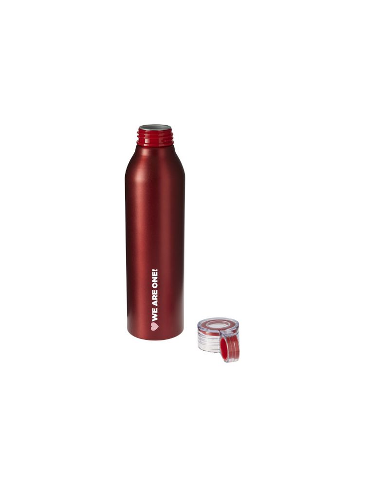 Ładny wygląd i lekkość – tak w skrócie można opisać aluminiową butelkę sportową Grom 650 ml. Przezroczysta zakręcana pokrywka jest odporna na rozlanie i ma pętelkę z funkcją color-pop, która ułatwia przenoszenie. Matowe, metaliczne wykończenie nadaje butelce stylowy wygląd. Niezależnie od tego, co chcemy uczcić, butelka Grom z pewnością ucieszy każdego obdarowanego.