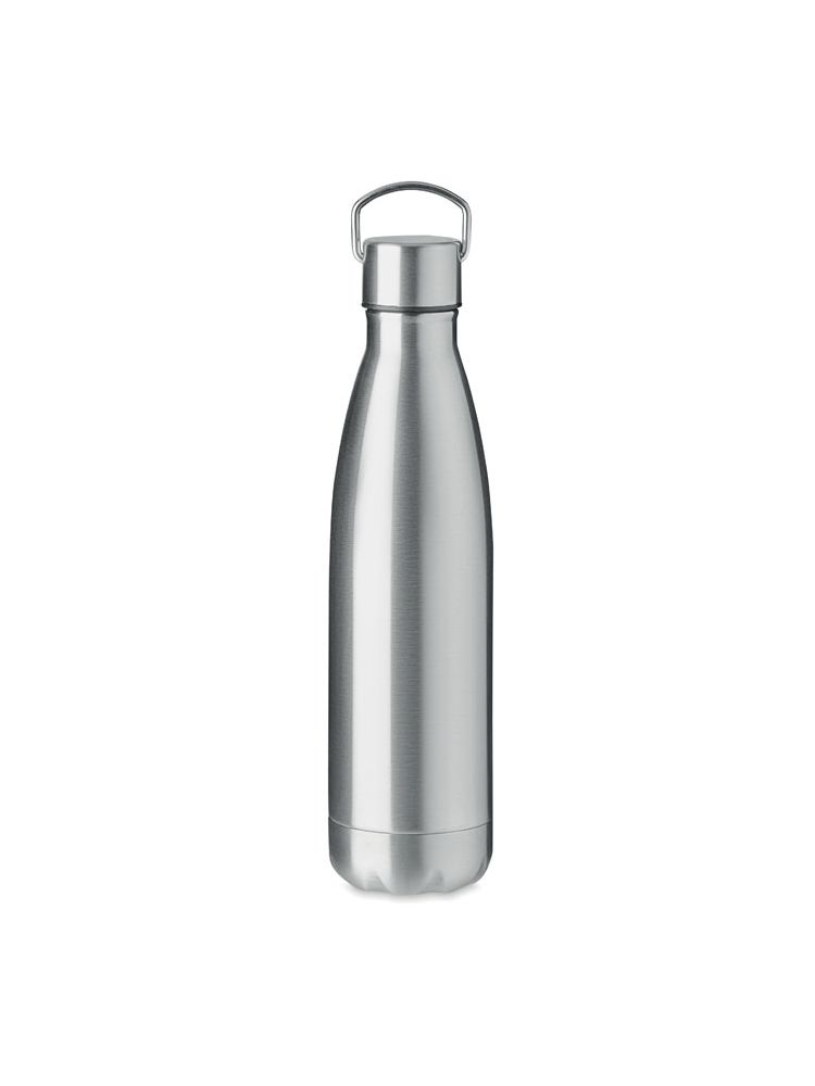 Dwuścienna butelka ze stali nierdzewnej z miedzianymi właściwościami izolującymi próżnię z zakrętką z uchwytem. Pojemność 500 ml. Nie przecieka.