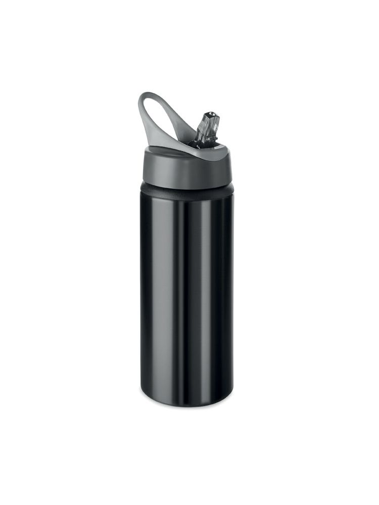 Aluminiowa jednowarstwowa butelka do picia ze składanym ustnikiem. Pokrywka posiada uchwyt umożliwiający zawieszenie butelki. Pojemność 600 ml. Znakowanie sublimacją jest możliwe tylko na białych produktach. Szczelna.
