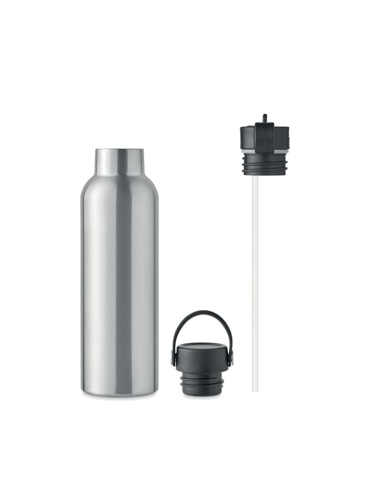 Izolowana próżniowo butelka o podwójnych ściankach ze stali nierdzewnej z recyklingu (90% stali nierdzewnej z recyklingu i 10% stali nierdzewnej) ze szczelną zakrętką i dodatkową wymienną wbudowaną słomką. Pojemność: 700 ml.