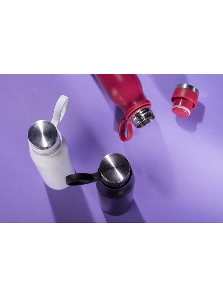 Butelka GRAVI o pojemności 480 ml jest elegancka i wytrzymała. Wykonanie ze stali nierdzewnej sprawia, że napój pozostaje w odpowiedniej temperaturze na dłużej. Dzięki swojemu smukłemu kształtowi, butelka GRAVI doskonale mieści się w dłoni. Butelka GRAVI to ekologiczne rozwiązanie, które pozwala uniknąć używania jednorazowych plastikowych butelek, dbając jednocześnie o środowisko.