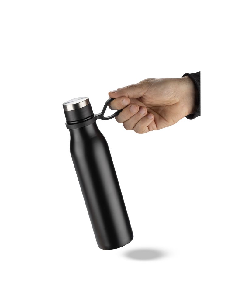 Butelka GRAVI o pojemności 480 ml jest elegancka i wytrzymała. Wykonanie ze stali nierdzewnej sprawia, że napój pozostaje w odpowiedniej temperaturze na dłużej. Dzięki swojemu smukłemu kształtowi, butelka GRAVI doskonale mieści się w dłoni. Butelka GRAVI to ekologiczne rozwiązanie, które pozwala uniknąć używania jednorazowych plastikowych butelek, dbając jednocześnie o środowisko.