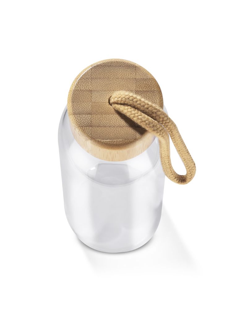 Butelka VIDO o pojemności 560 ml to przyjazna środowisku alternatywa dla plastikowych butelek. Wykonana jest ze szkła borokrzemowego, które jest szkłem wysokiej jakości i jest odporne na wysokie temperatury. Nakrętka wykończona jest naturalnym bambusem i znajduje się na niej wygodny sznurek, który funkcjonuje jako uchwyt.