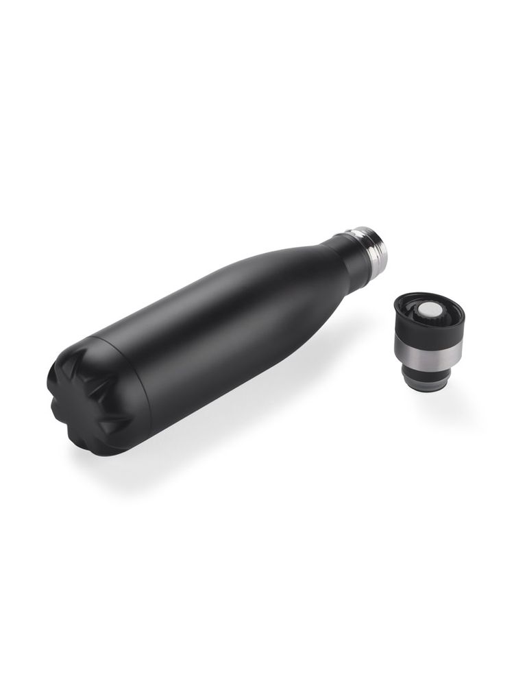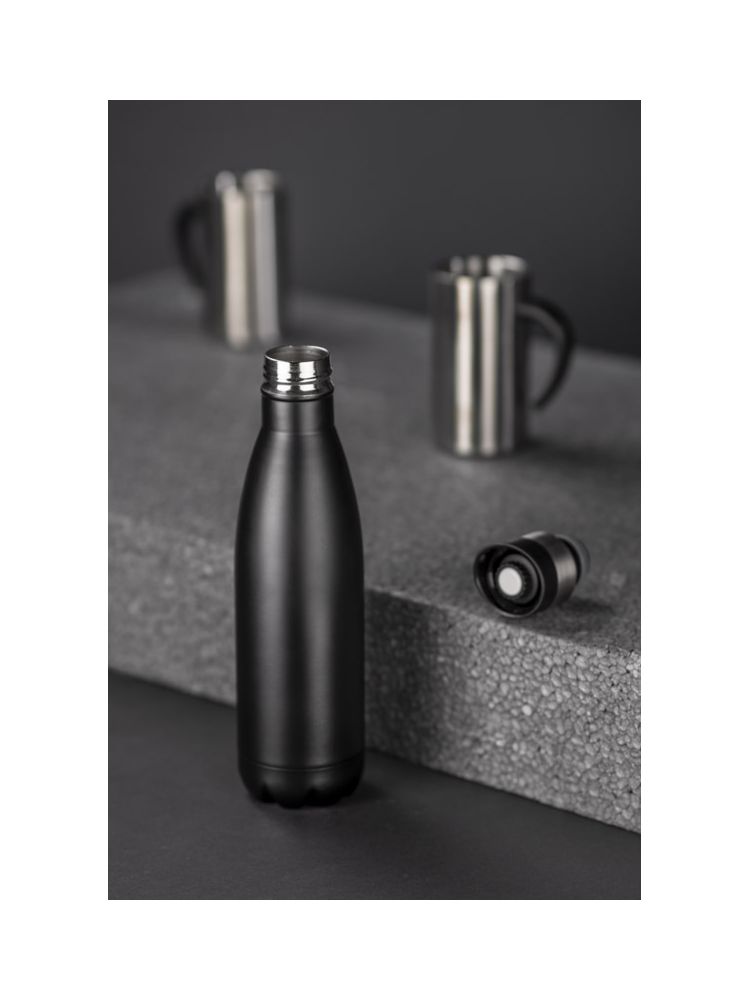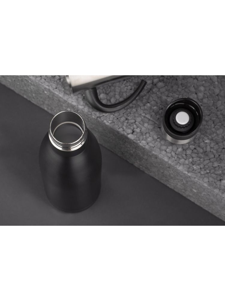 Butelka termiczna BURN wykonana ze stali nierdzewnej o podwyższonym standardzie dzięki próżni między ściankami utrzymuje temperaturę do ok. 12 godzin. Przykrywka z ustnikiem posiada wygodny przycisk, dzięki któremu aby się napić nie trzeba jej odkręcać.