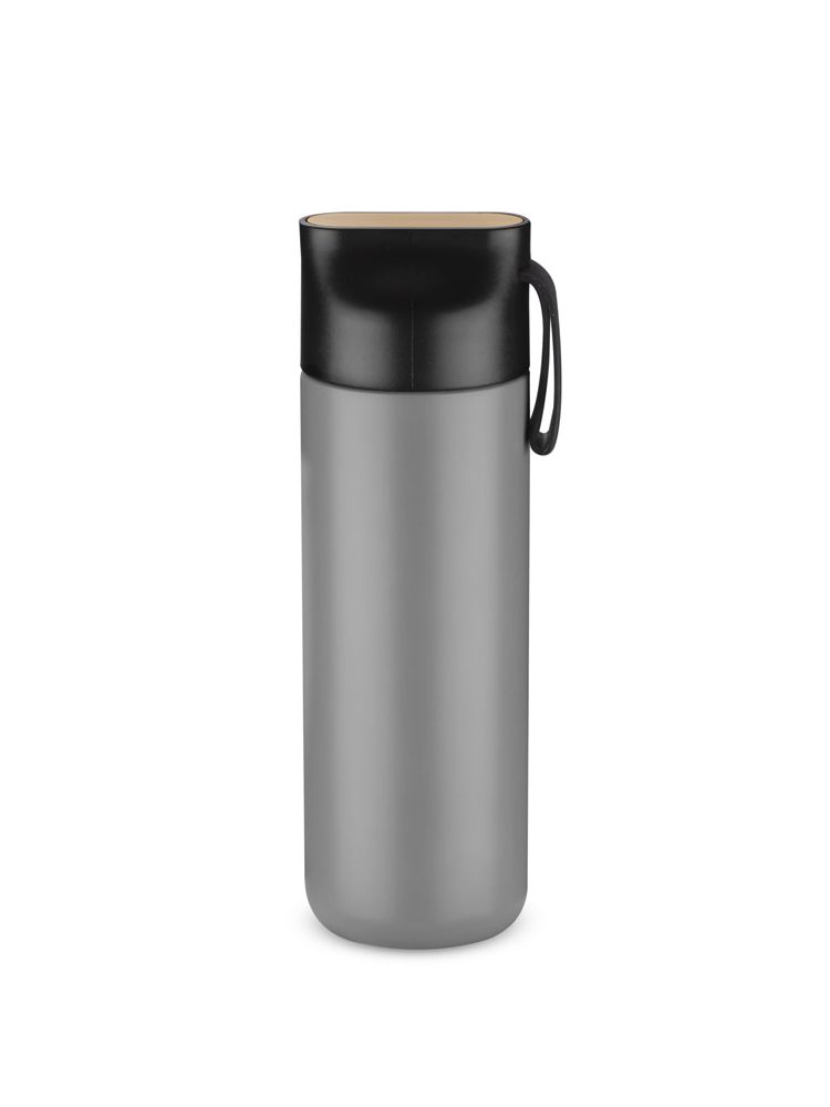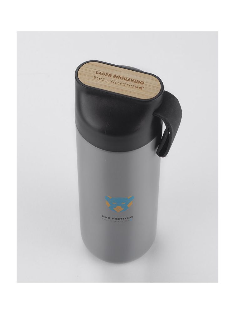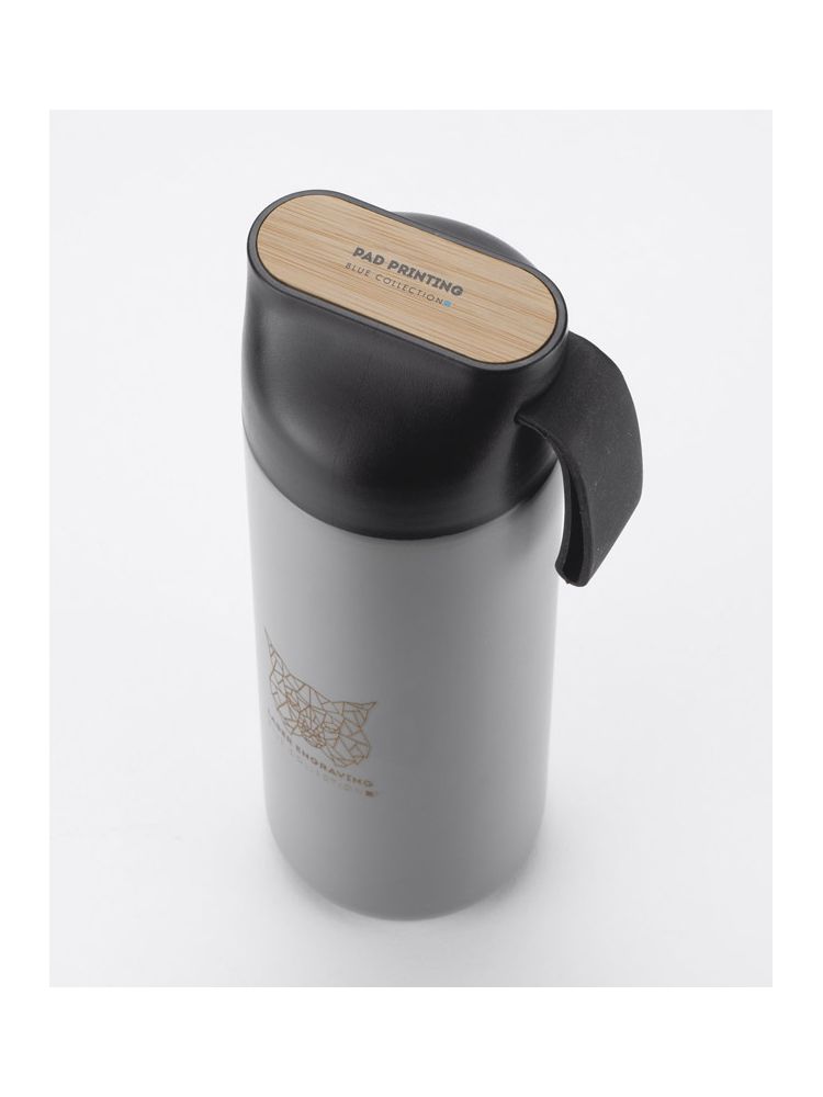 Butelka termiczna ELSA wykonana jest ze stali nierdzewnej o podwyższonym standardzie. Posiada próżnię między ściankami, dzięki czemu utrzymuje temperaturę napoju około 10 godzin. Zakrętka z tworzywa posiada ozdobny element z naturalnego bambusa i silikonowy uchwyt.