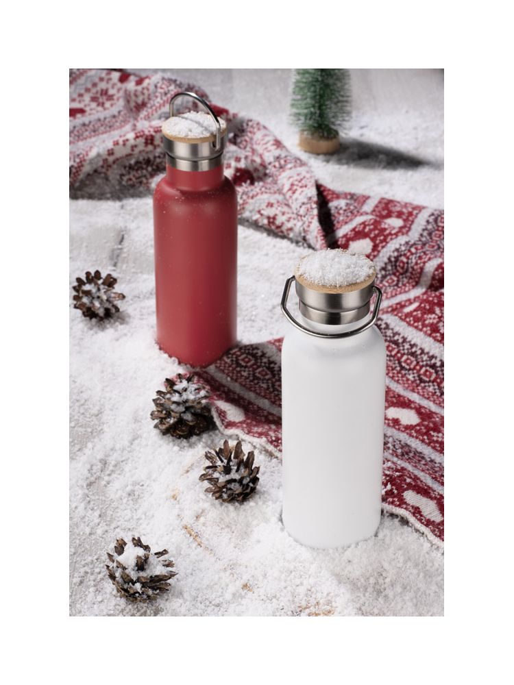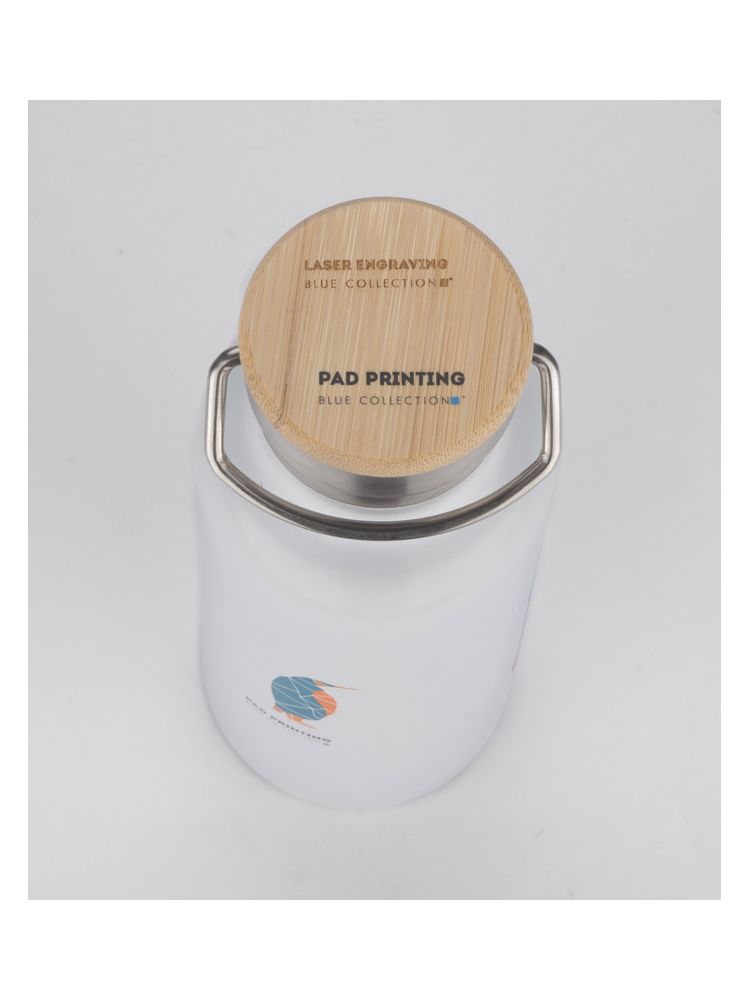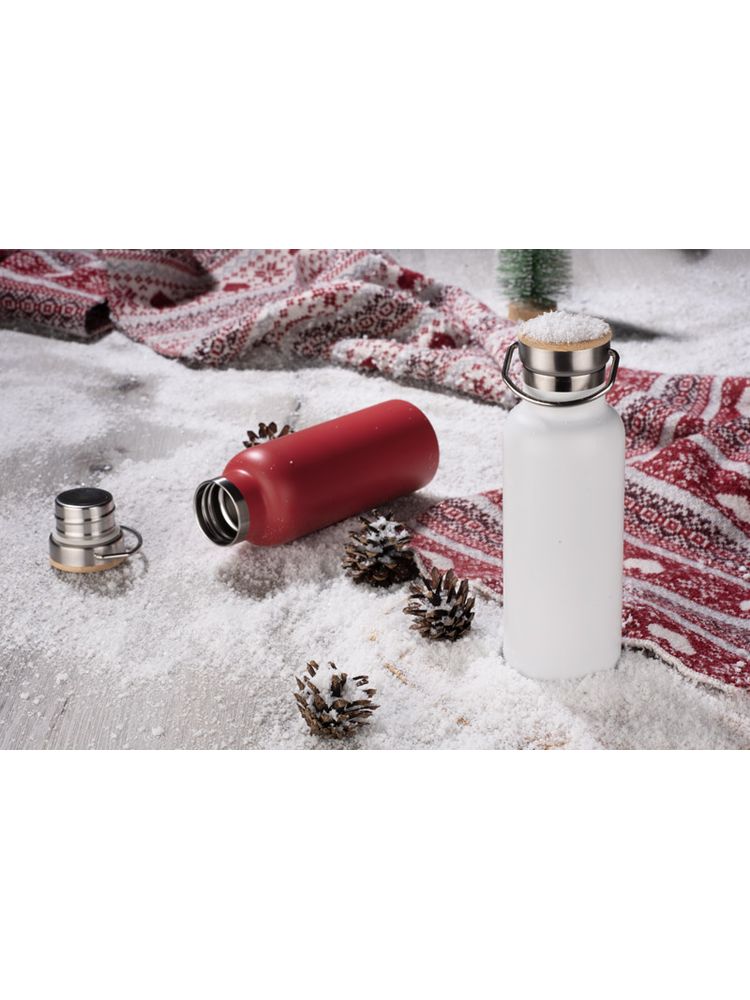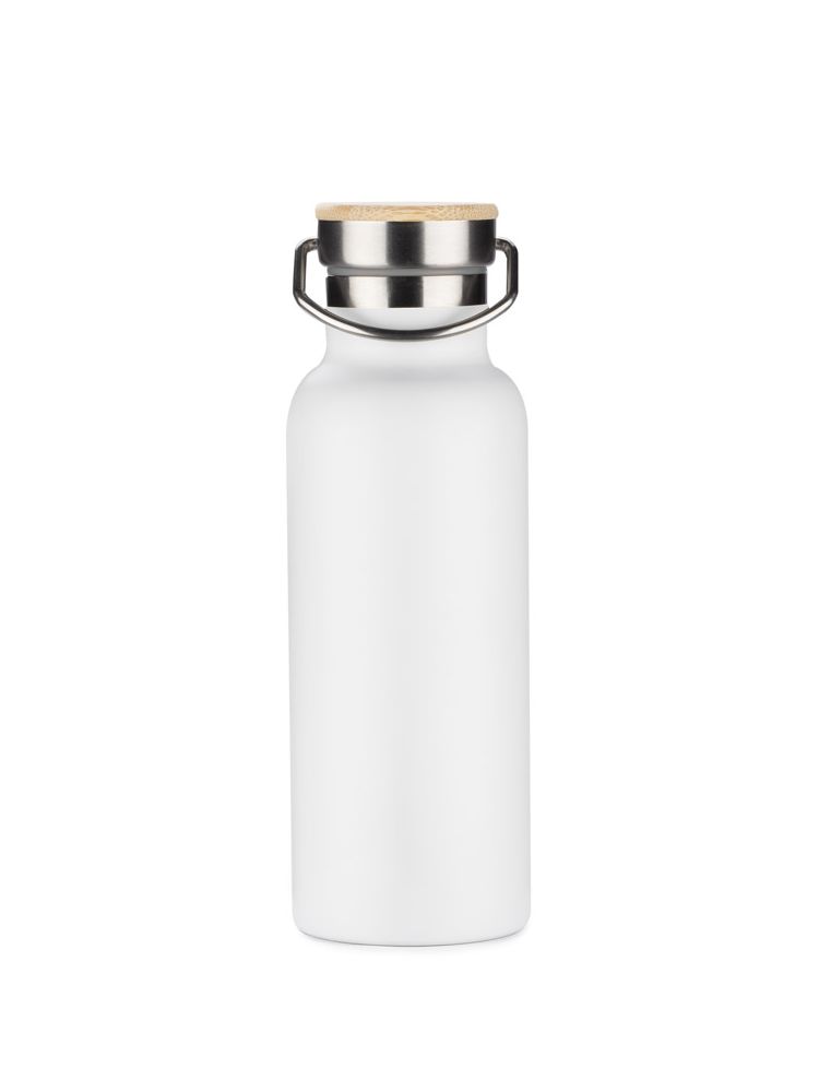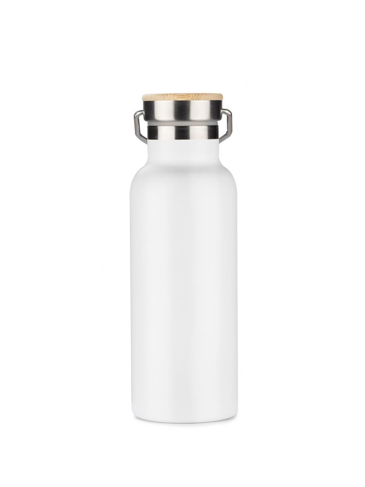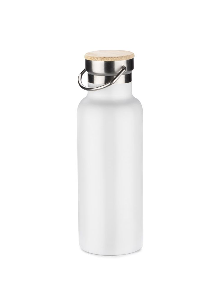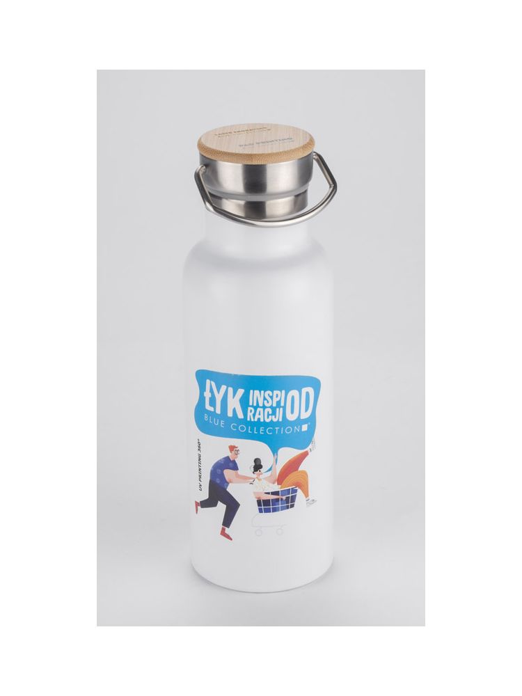 Butelka termiczna KAAN wykonana ze stali nierdzewnej o podwyższonym standardzie. Posiada ciekawy design uchwytu oraz zakrętki z bambusowym wykończeniem. Posiada próżnię między ściankami, dzięki czemu utrzymuje temperaturę napoju do około 10 godzin.