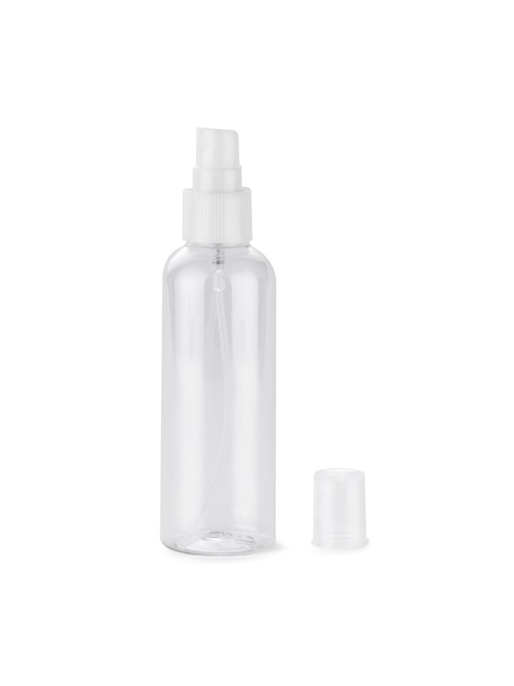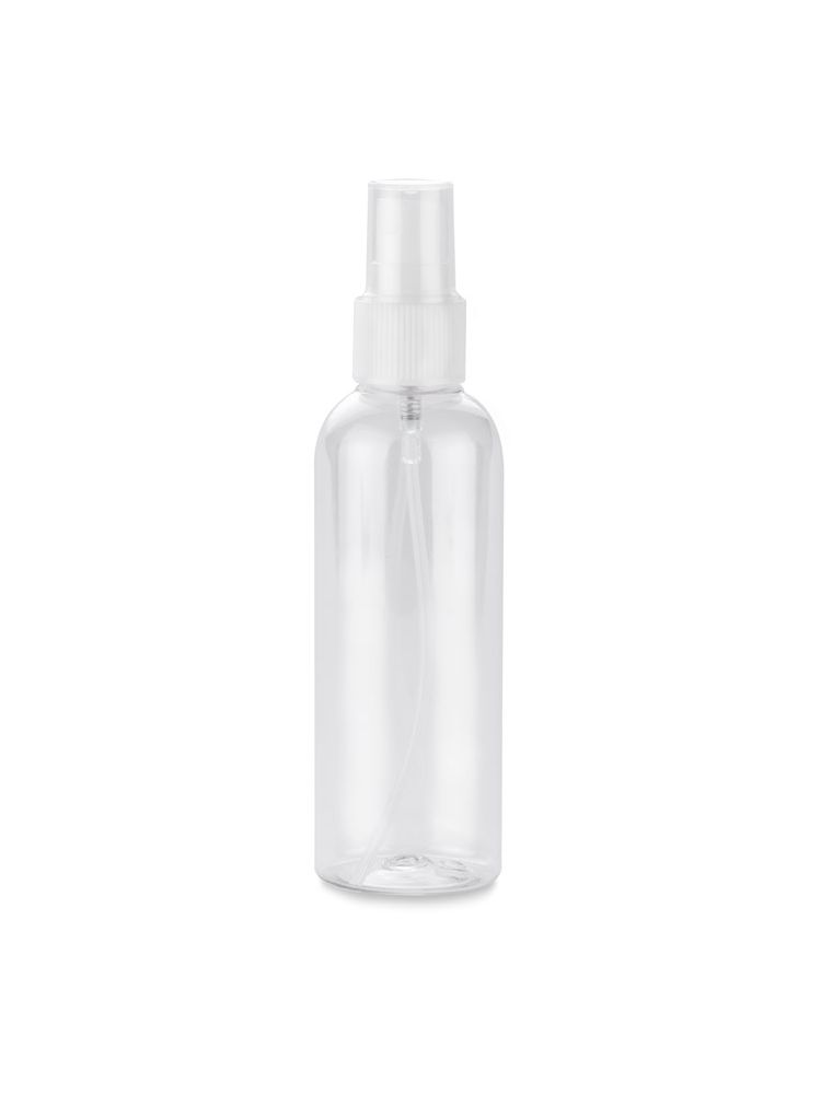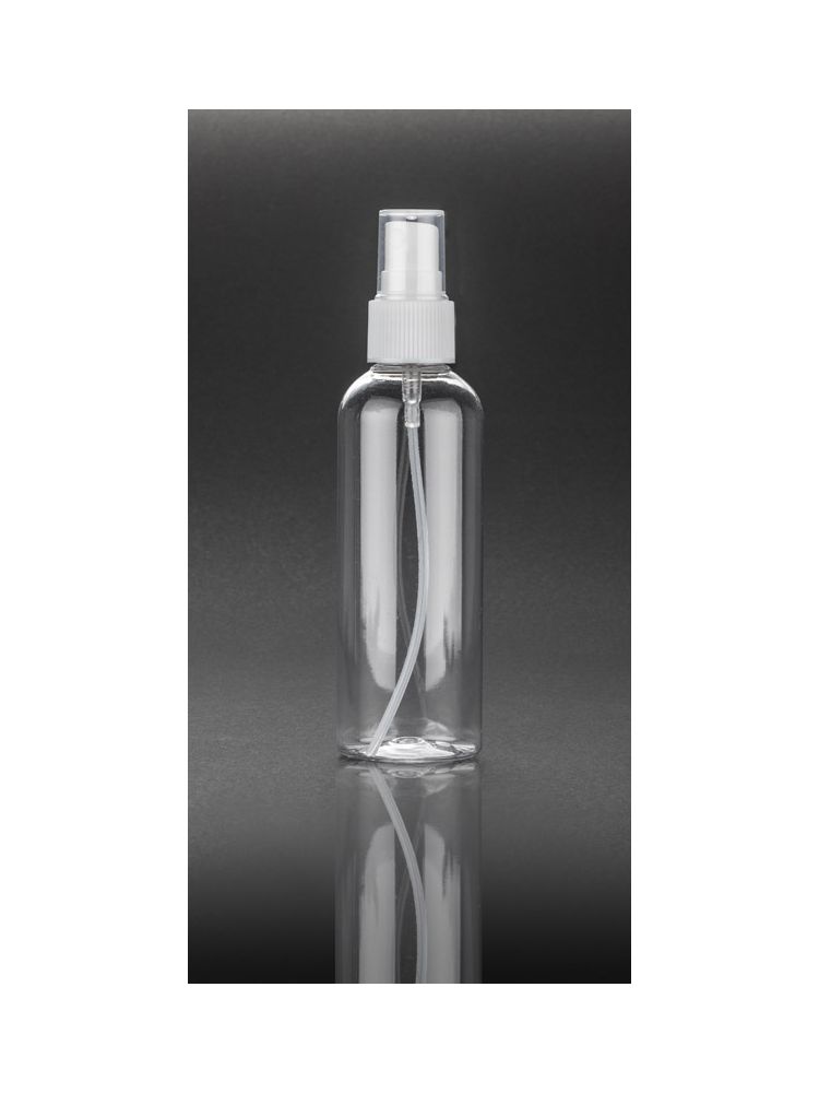 Bardzo poręczna plastikowa butelka wielorazowego użytku z tworzywa PET z rozpylaczem świetnie sprawdzi się do produktów czyszczących, płynów dezynfekujących, kosmetyków, czy produktów do włosów. Co istotne, tworzywo PET jest całkowicie bezpieczne w kontakcie z alkoholem etylowym. Główne cechy produktu to: poręczny rozmiar, niewielka waga i wygodny atomizer. Pojemność 100 ml