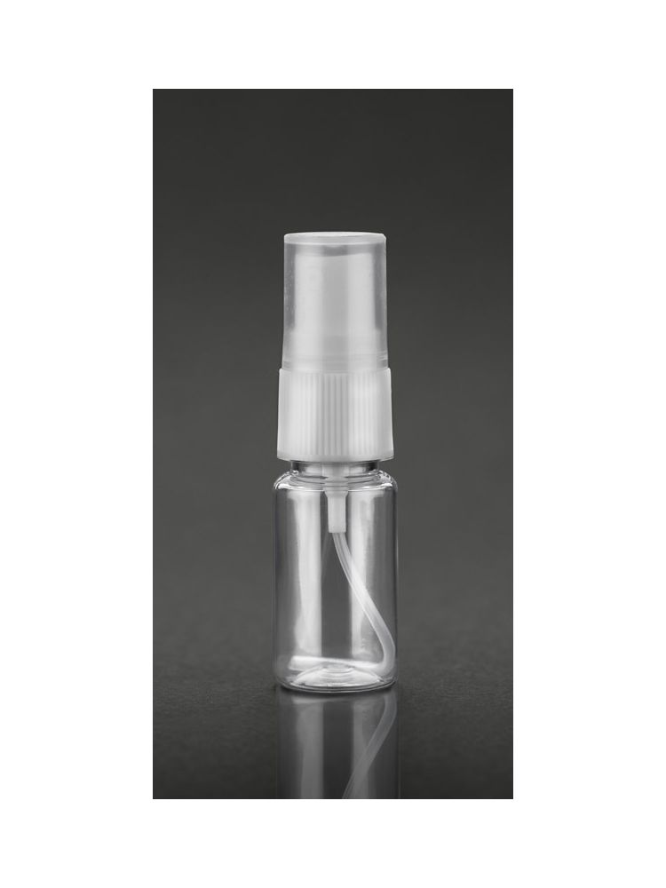 Bardzo poręczna plastikowa butelka wielorazowego użytku z tworzywa PET z rozpylaczem świetnie sprawdzi się do produktów czyszczących, płynów dezynfekujących, kosmetyków, czy produktów do włosów. Co istotne, tworzywo PET jest całkowicie bezpieczne w kontakcie z alkoholem etylowym. Główne cechy produktu to: poręczny rozmiar, niewielka waga i wygodny atomizer. Pojemność 10 ml