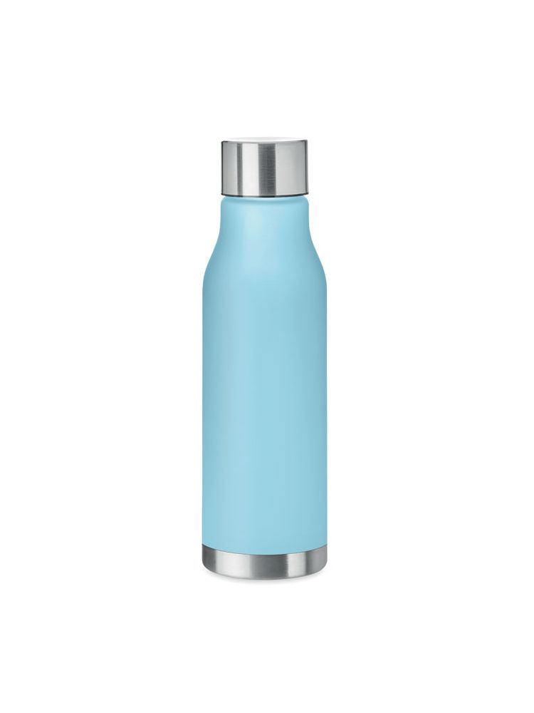 Butelka z RPET z gumowanym wykończeniem, zakrętka ze stali nierdzewnej z silikonowym pierścieniem. Bez BPA. Szczelna. Pojemność: 600 ml. Nie nadaje się do napojów gazowanych.