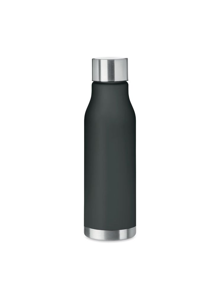 Butelka z RPET z gumowanym wykończeniem, zakrętka ze stali nierdzewnej z silikonowym pierścieniem. Bez BPA. Szczelna. Pojemność: 600 ml. Nie nadaje się do napojów gazowanych.