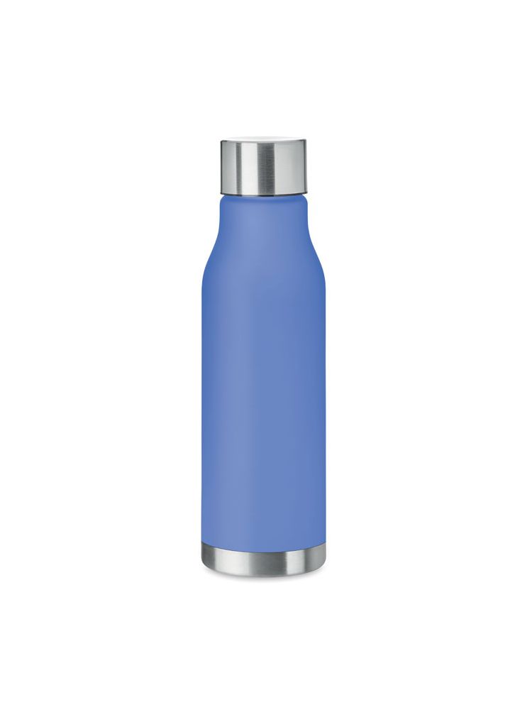 Butelka z RPET z gumowanym wykończeniem, zakrętka ze stali nierdzewnej z silikonowym pierścieniem. Bez BPA. Szczelna. Pojemność: 600 ml. Nie nadaje się do napojów gazowanych.