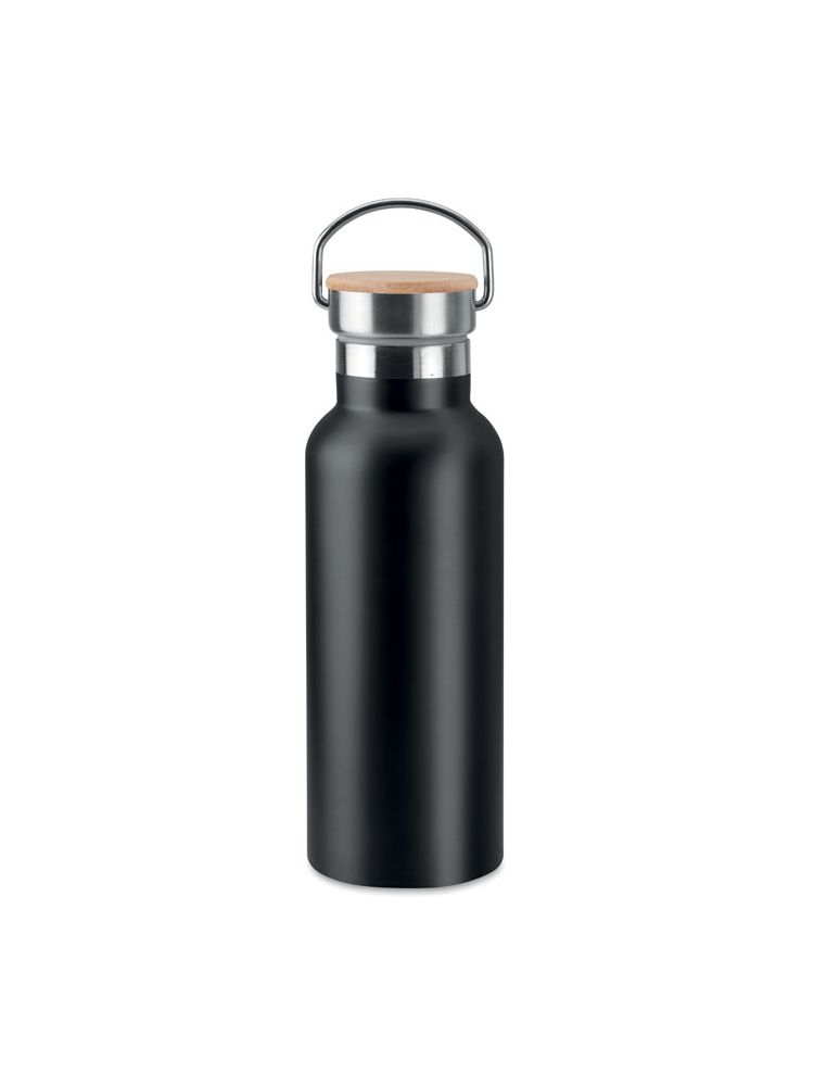 Termos ze stali nierdzewnej z podwójnymi ściankami, 500 ml. Pokrywka z bambusa, z uchwytem. Znakowanie sublimacją jest możliwe tylko na białych produktach. Szczelna. Bambus jest produktem naturalnym, dlatego mogą wystąpić nieznaczne różnice w kolorze, wzorze i rozmiarze.