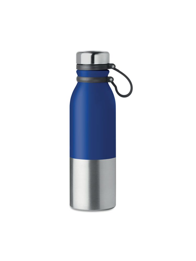 Dwuścienna malowana proszkowo butelka ze stali nierdzewnej z silikonowym uchwytem do łatwego przenoszenia. Pojemność: 600 ml. Szczelna.